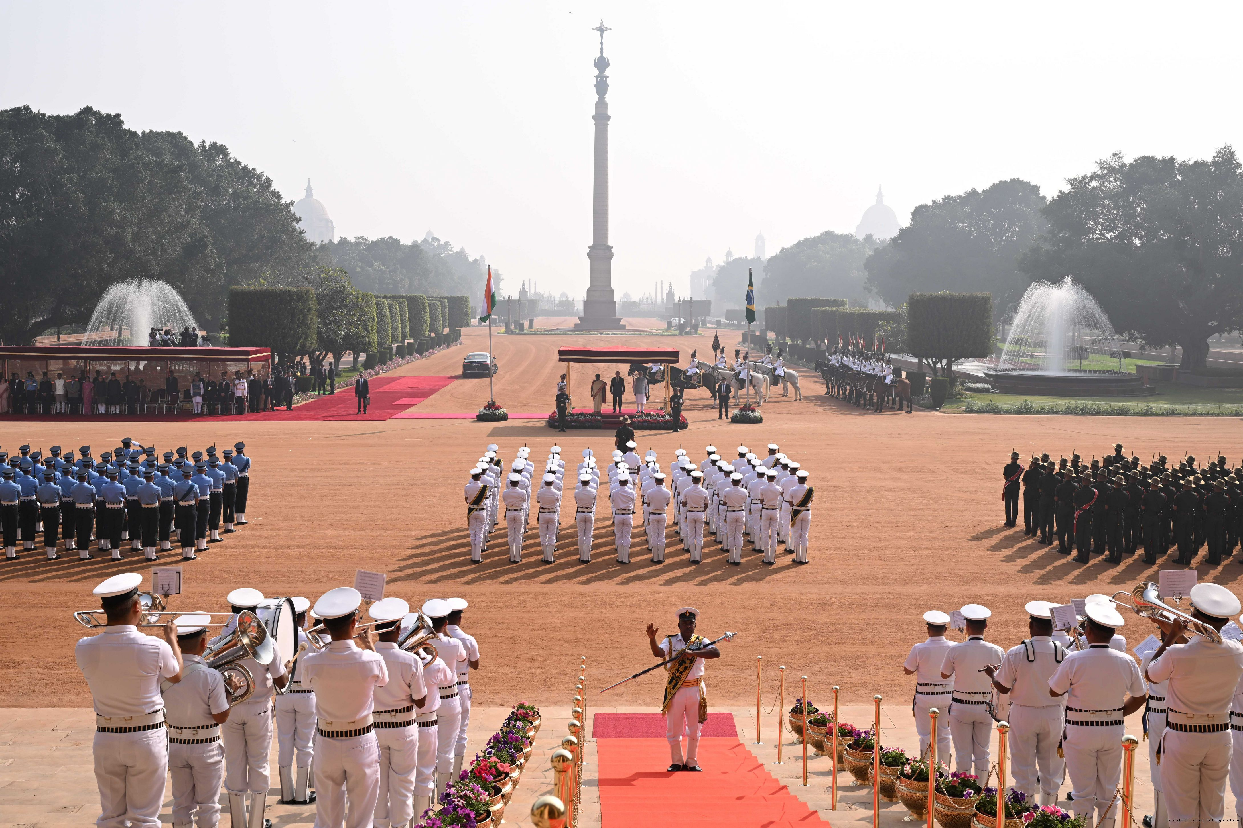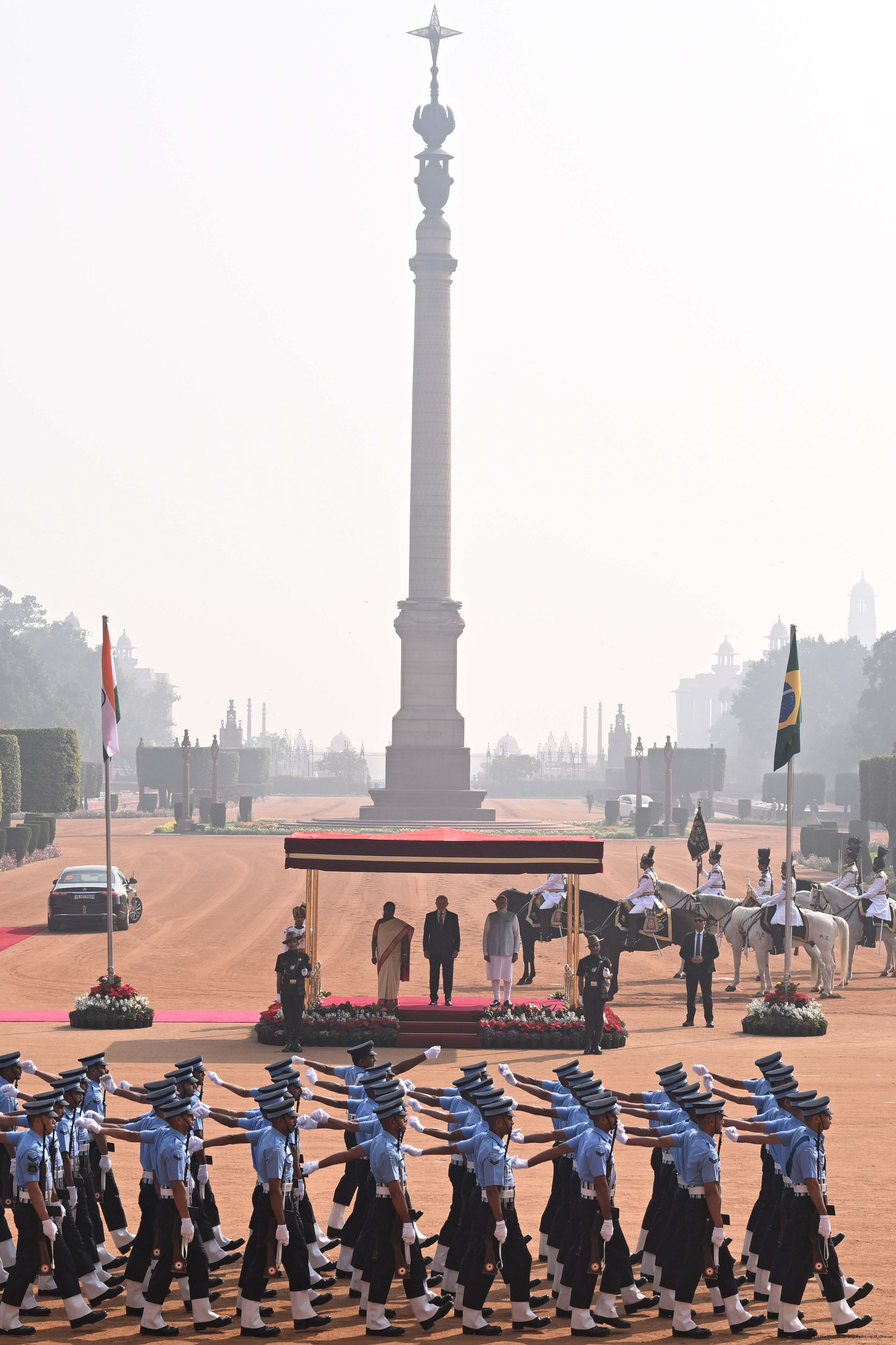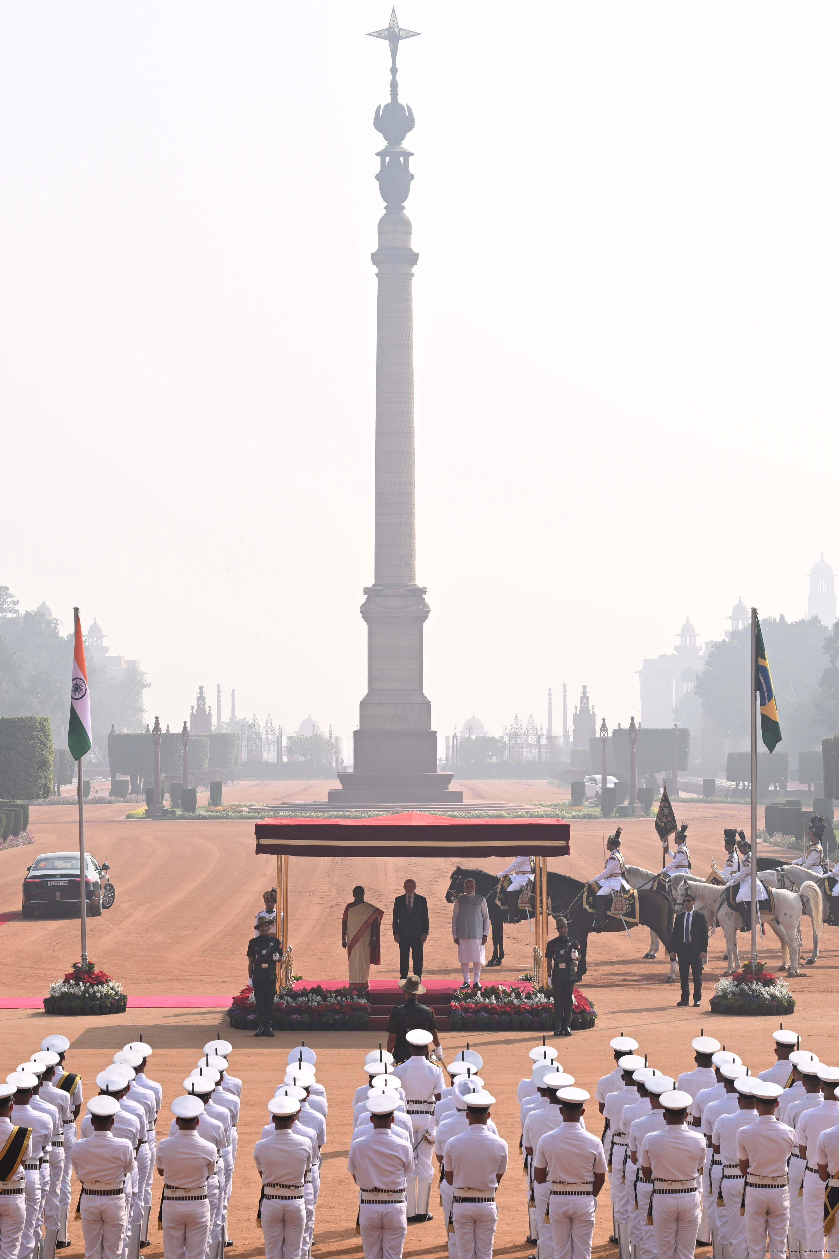 | Caption: | The President of India, Smt Droupadi Murmu accorded a ceremonial welcome to H.E. Mr. Luiz Inácio Lula da Silva, President of the Federative Republic of Brazil, at Rashtrapati Bhavan on February 21, 2026. |
