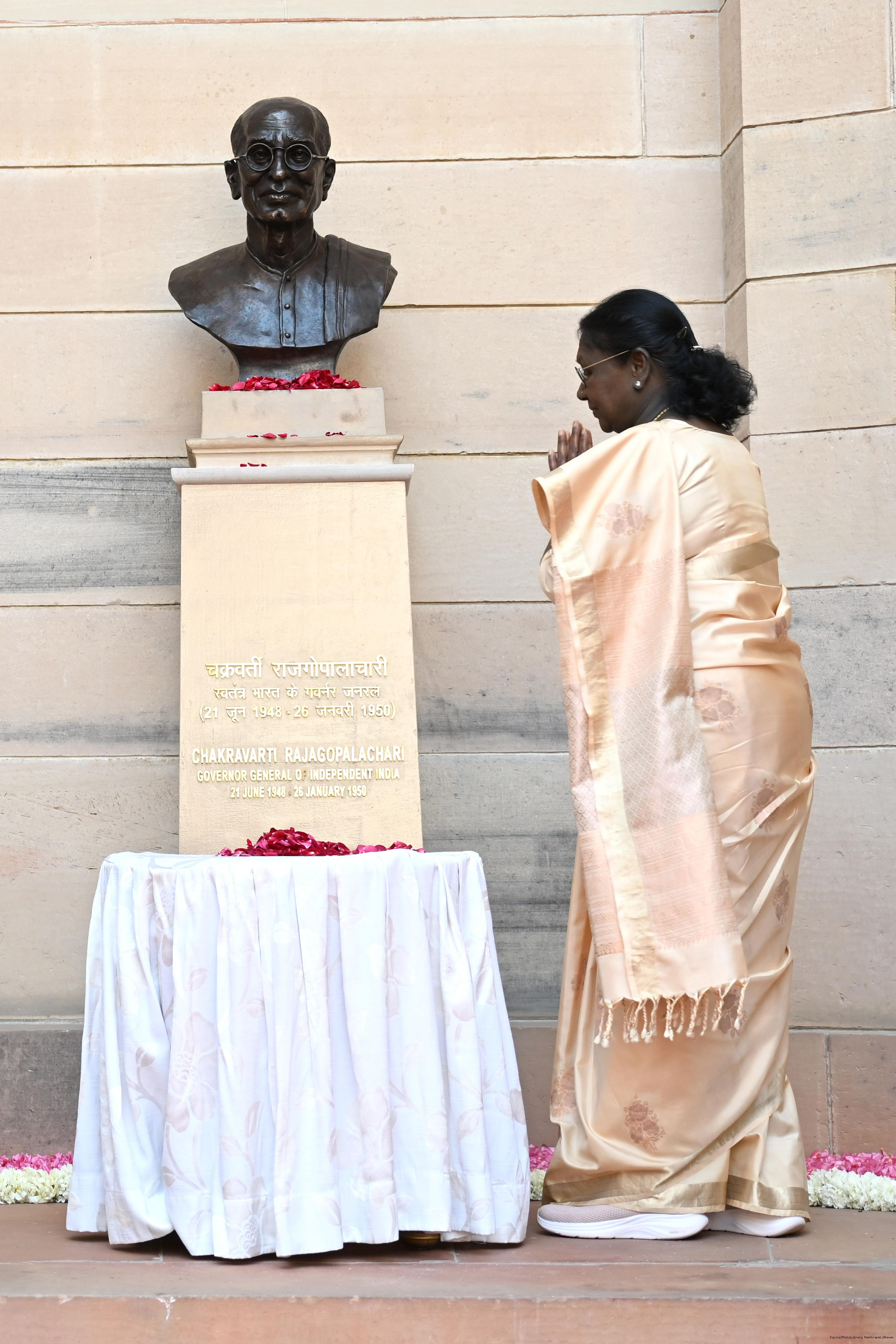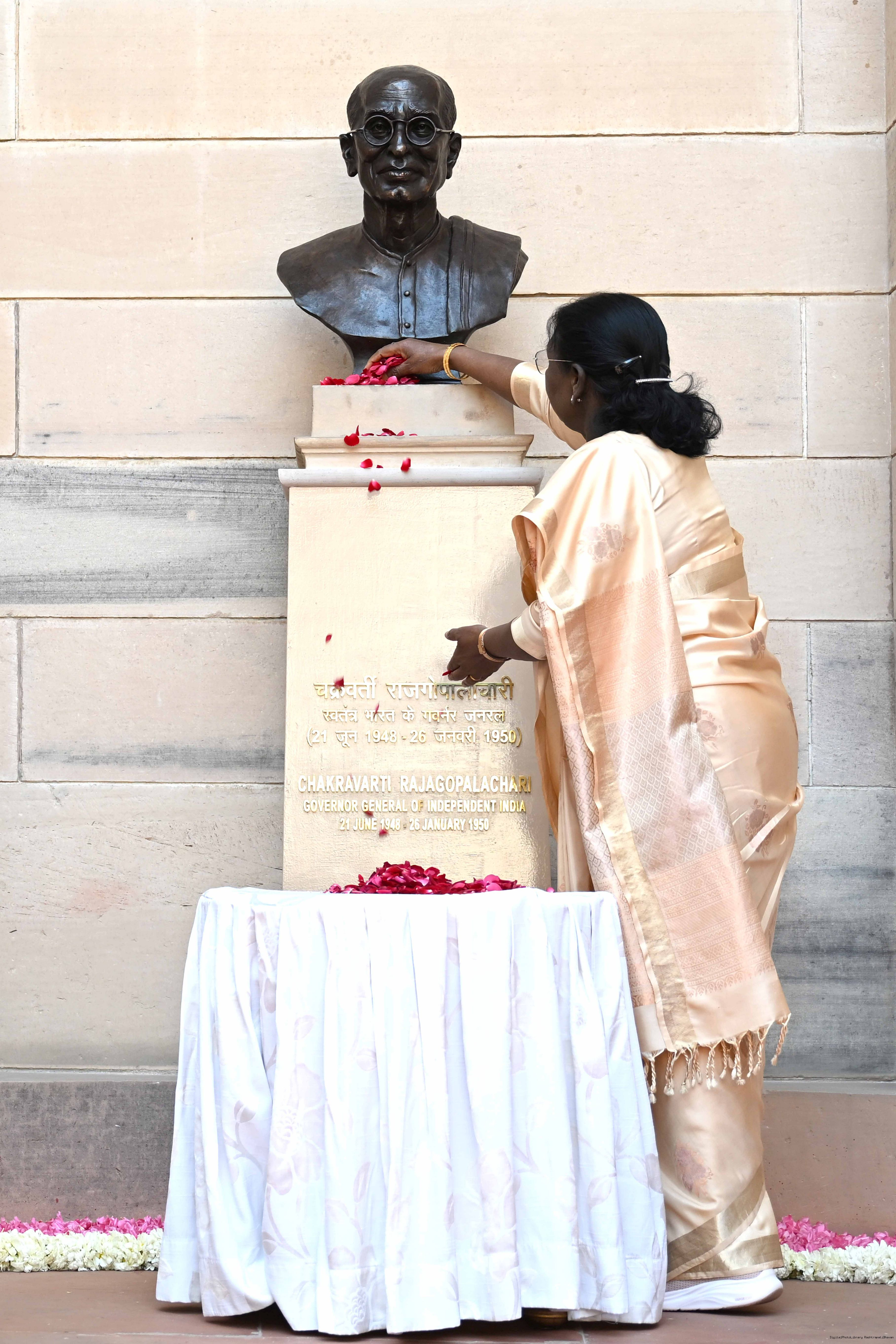 | Caption: | The President of India, Smt Droupadi Murmu unveiled bust of Shri Chakravarti Rajagopalachari Ji, the first and only Indian Governor General of independent India at Rashtrapati Bhavan on February 23, 2026. |