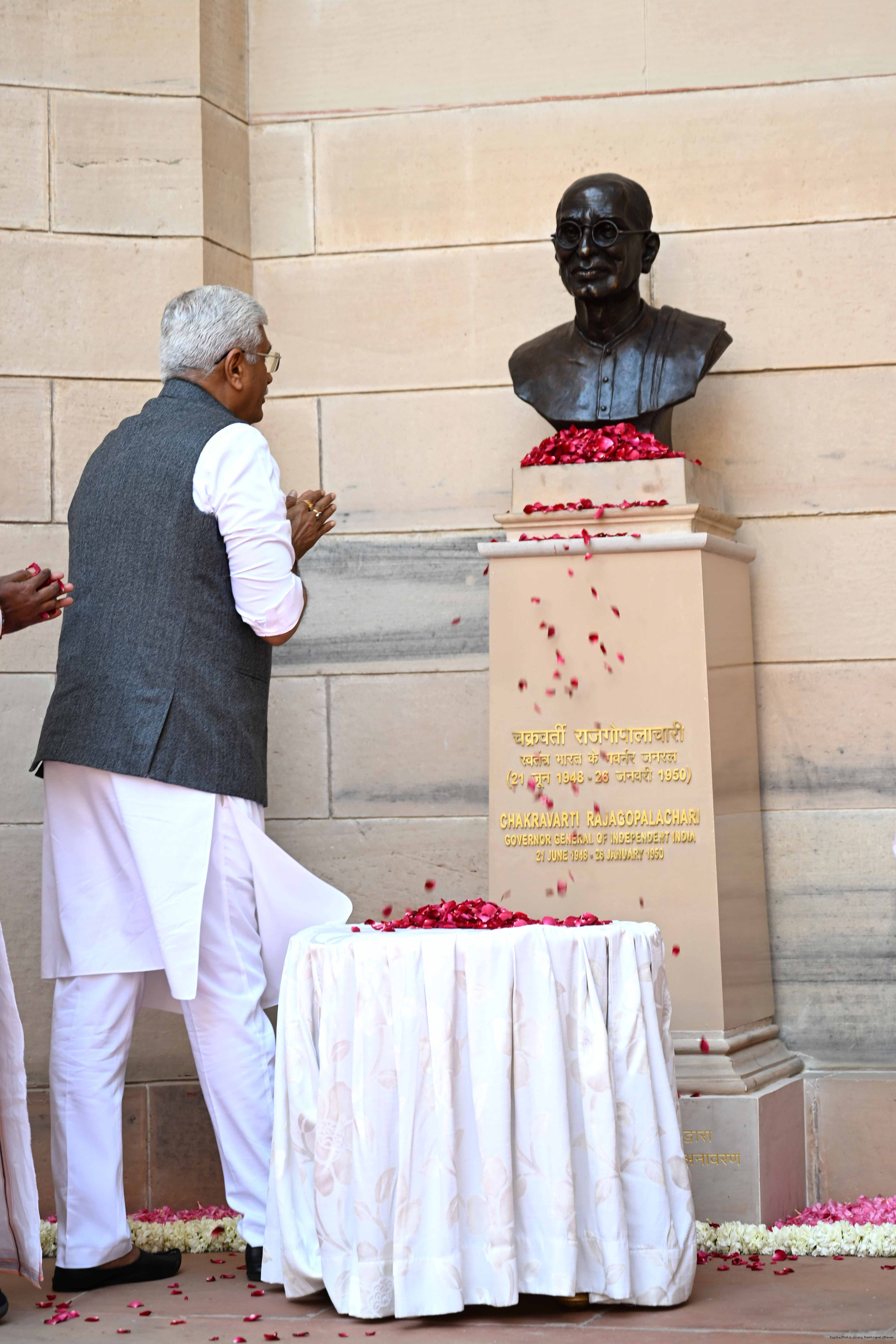 | Caption: | The President of India, Smt Droupadi Murmu unveiled bust of Shri Chakravarti Rajagopalachari Ji, the first and only Indian Governor General of independent India at Rashtrapati Bhavan on February 23, 2026. |