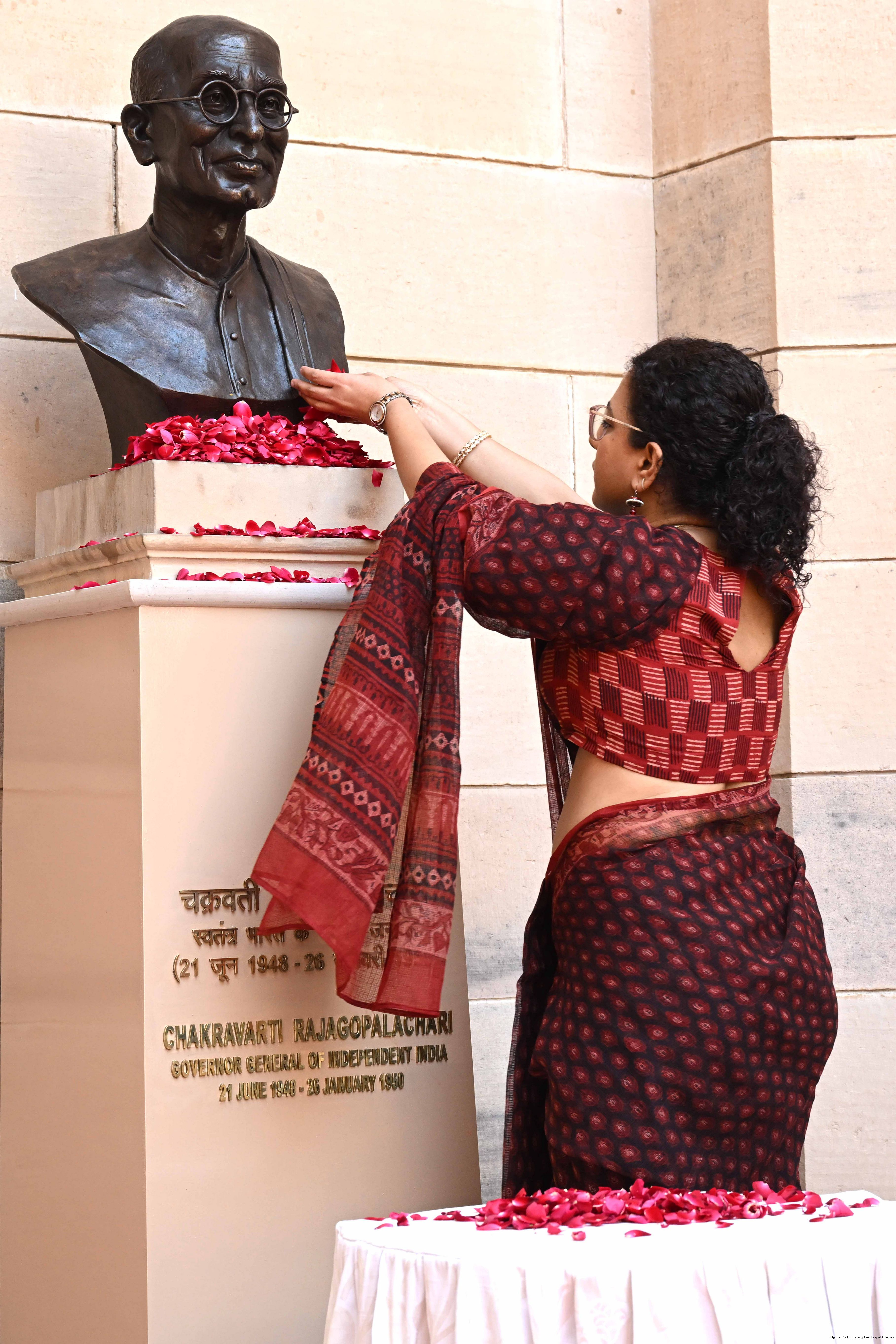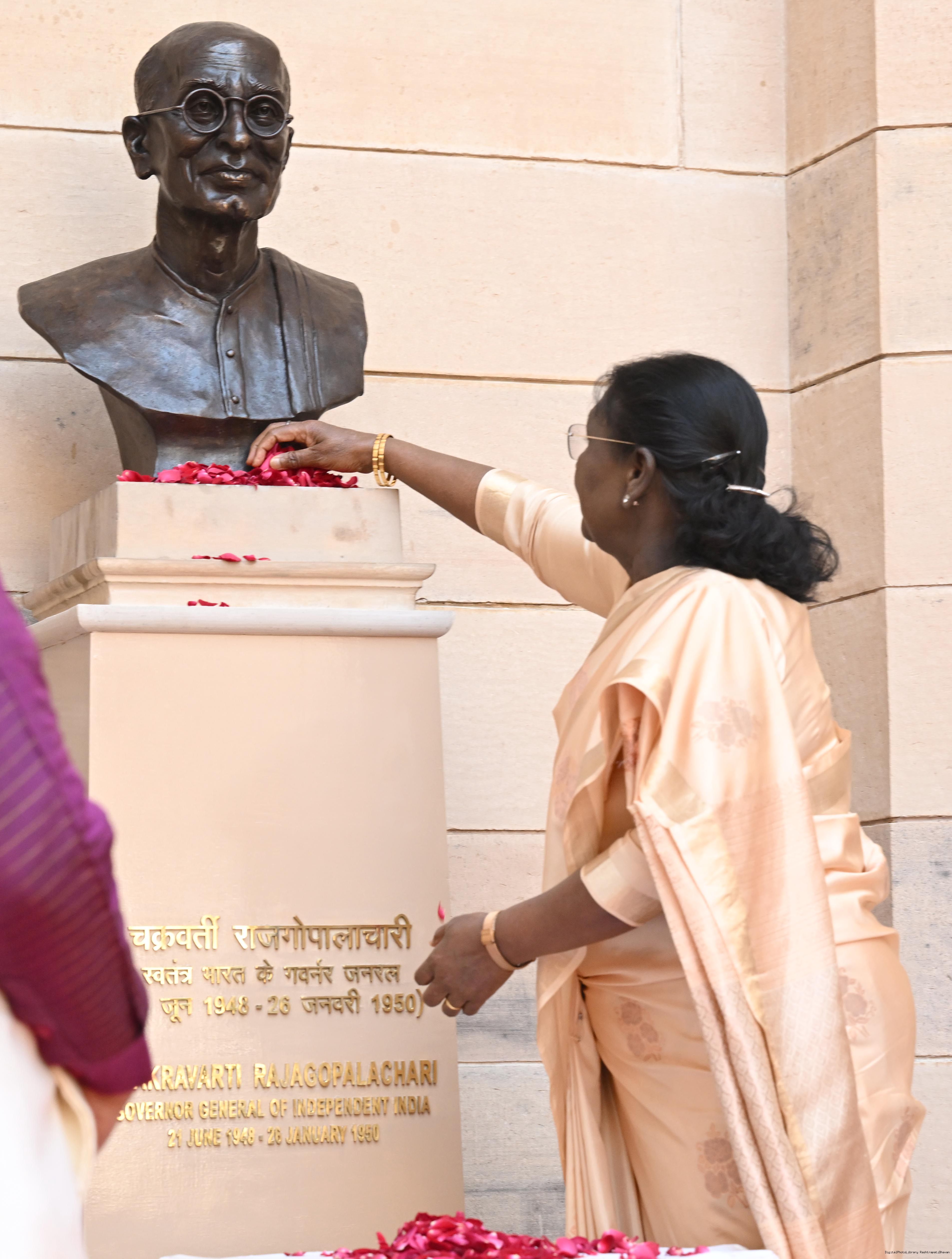 | Caption: | The President of India, Smt Droupadi Murmu unveiled bust of Shri Chakravarti Rajagopalachari Ji, the first and only Indian Governor General of independent India at Rashtrapati Bhavan on February 23, 2026. |