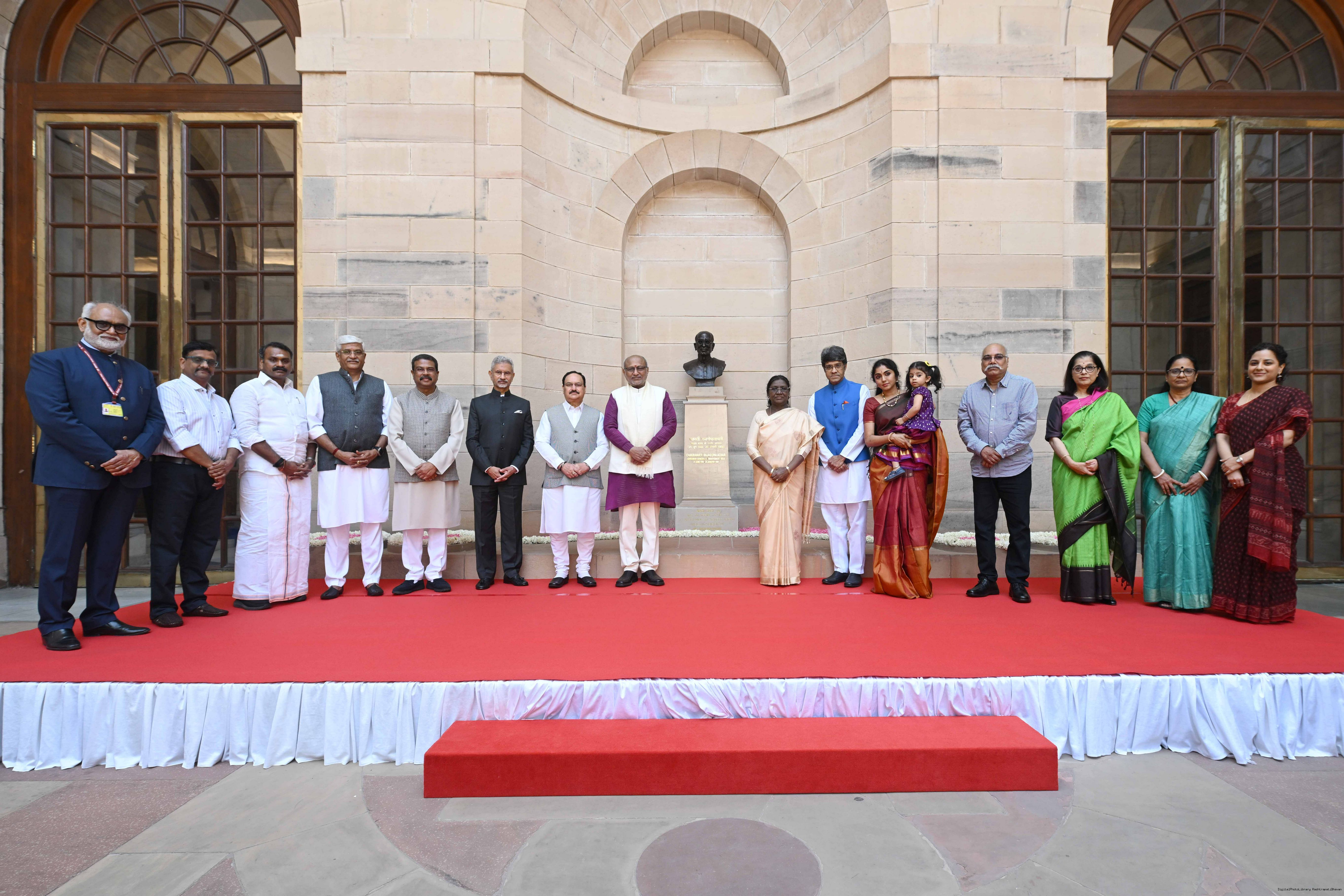 | Caption: | The President of India, Smt Droupadi Murmu unveiled bust of Shri Chakravarti Rajagopalachari Ji, the first and only Indian Governor General of independent India at Rashtrapati Bhavan on February 23, 2026. |