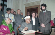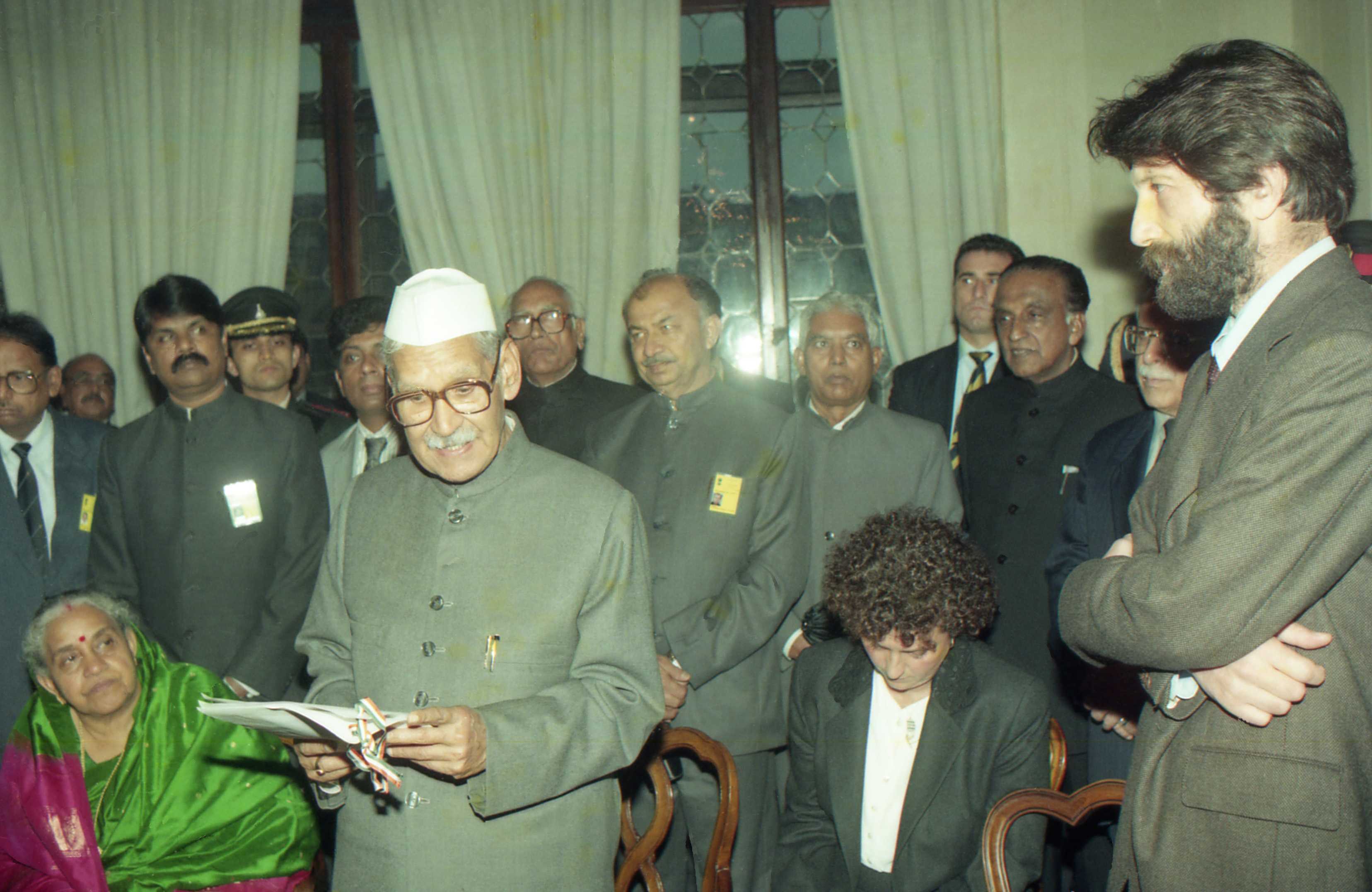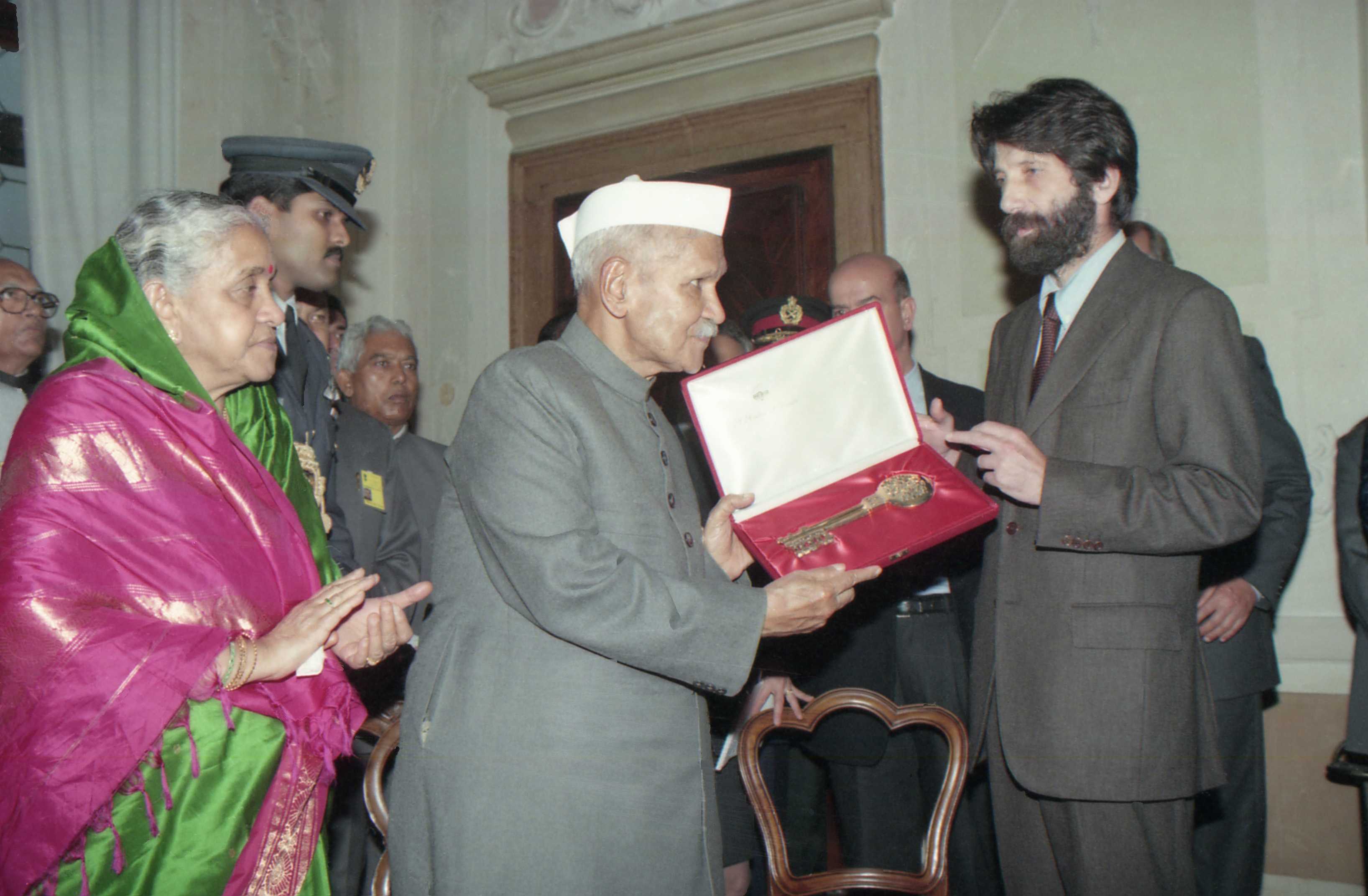 | Caption: | The President of India, Dr. Shankar Dayal Sharma receiving Key of the City of Venice from the Mayor of Venice, Mr. Massimo Cacciari, at City Hall, in Rome, Italy on October 16, 1996. |