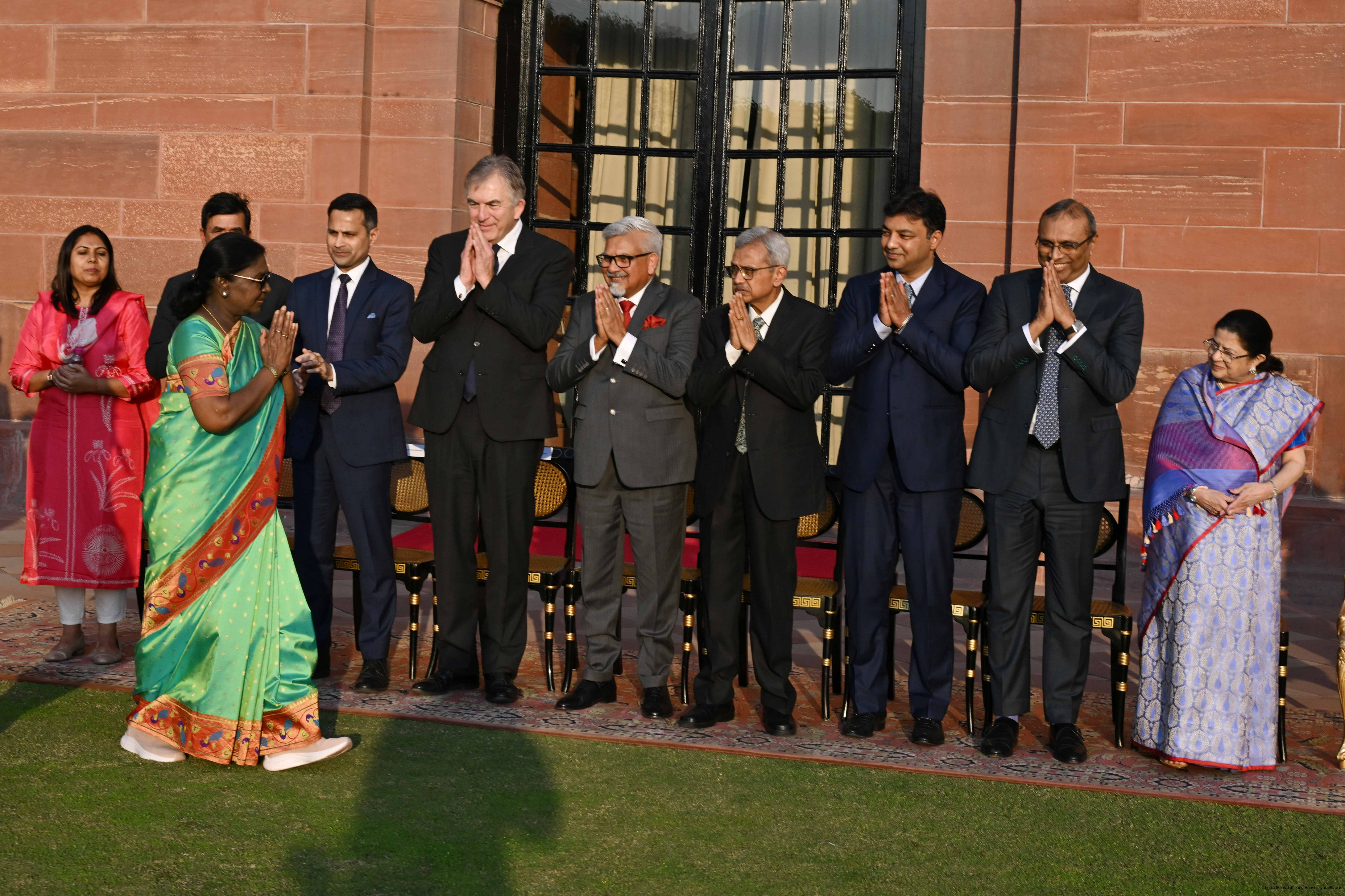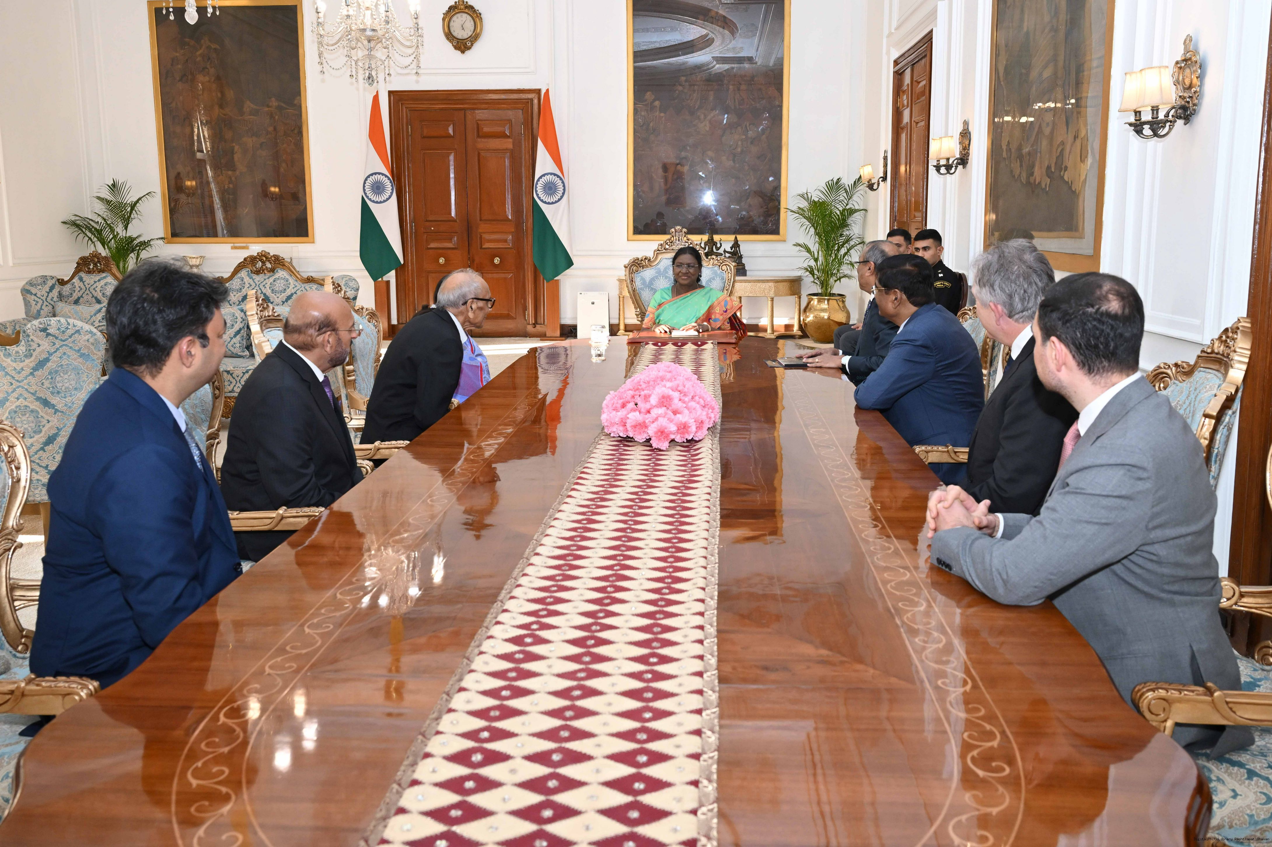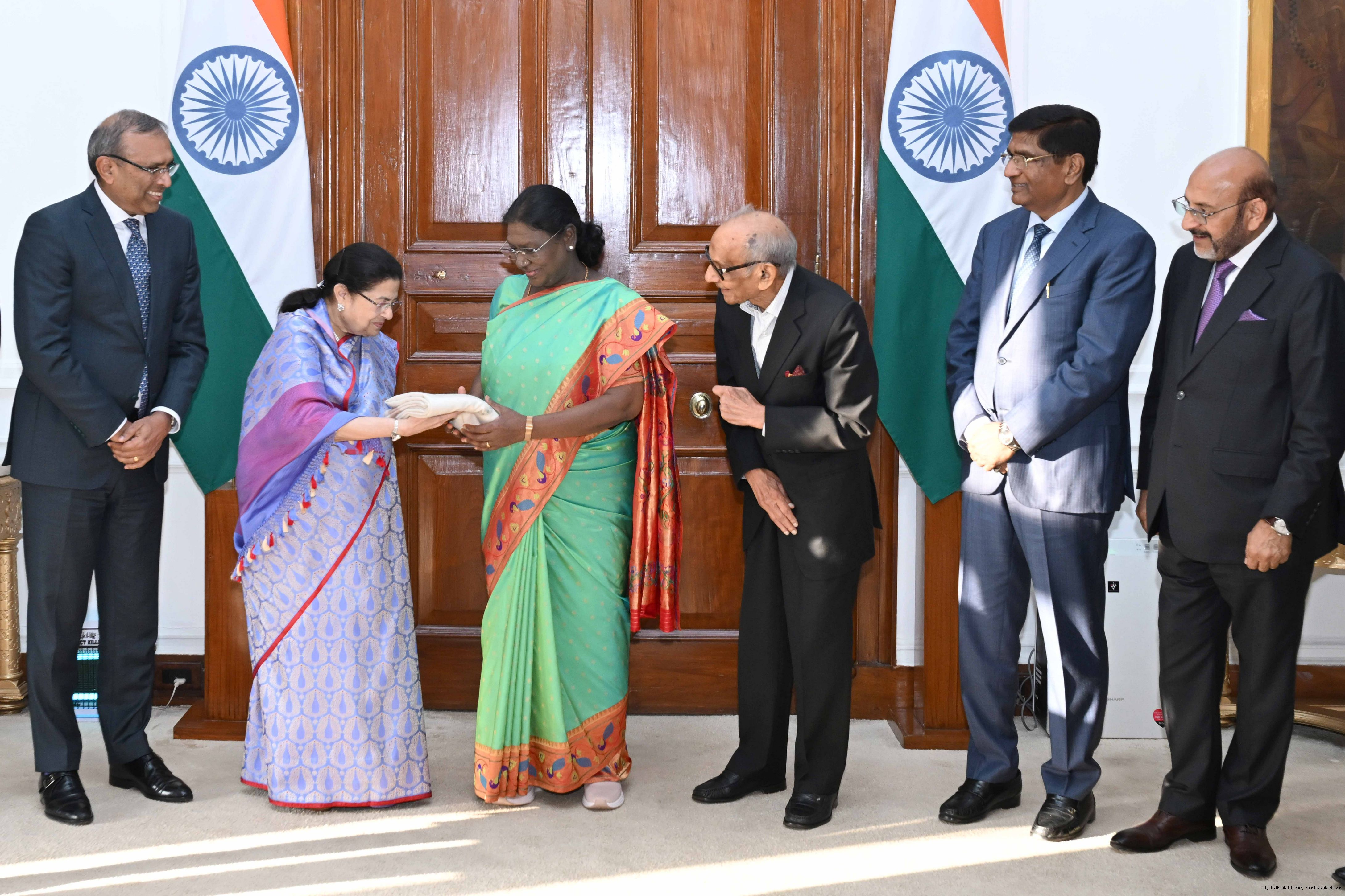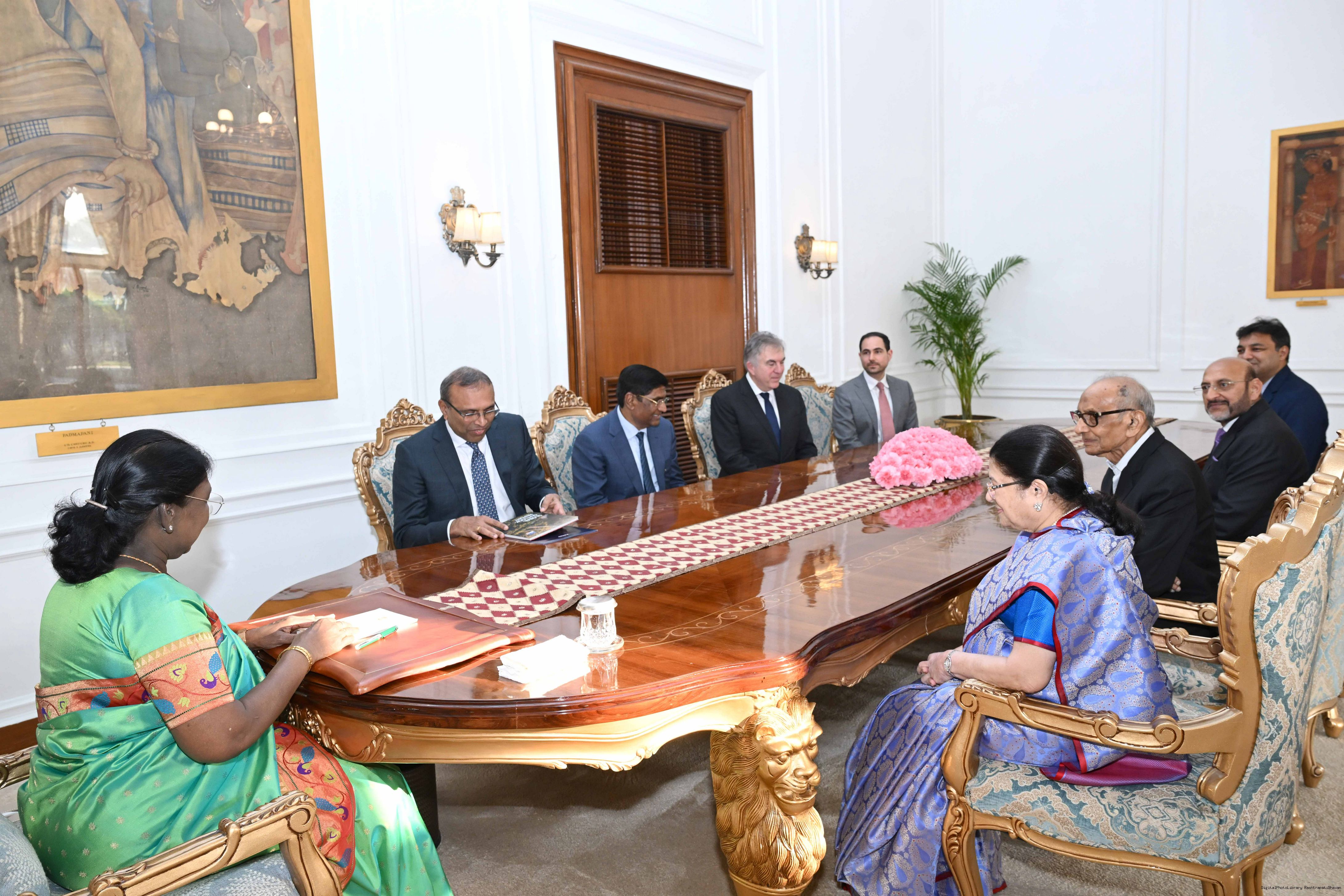 | Caption: | Smt. Rajshree Birla along with Shri Askaran Agarwala along with others meetig with the President of India, Smt Droupadi Murmu at Rashtrapati Bhavan on February 23, 2026. |
