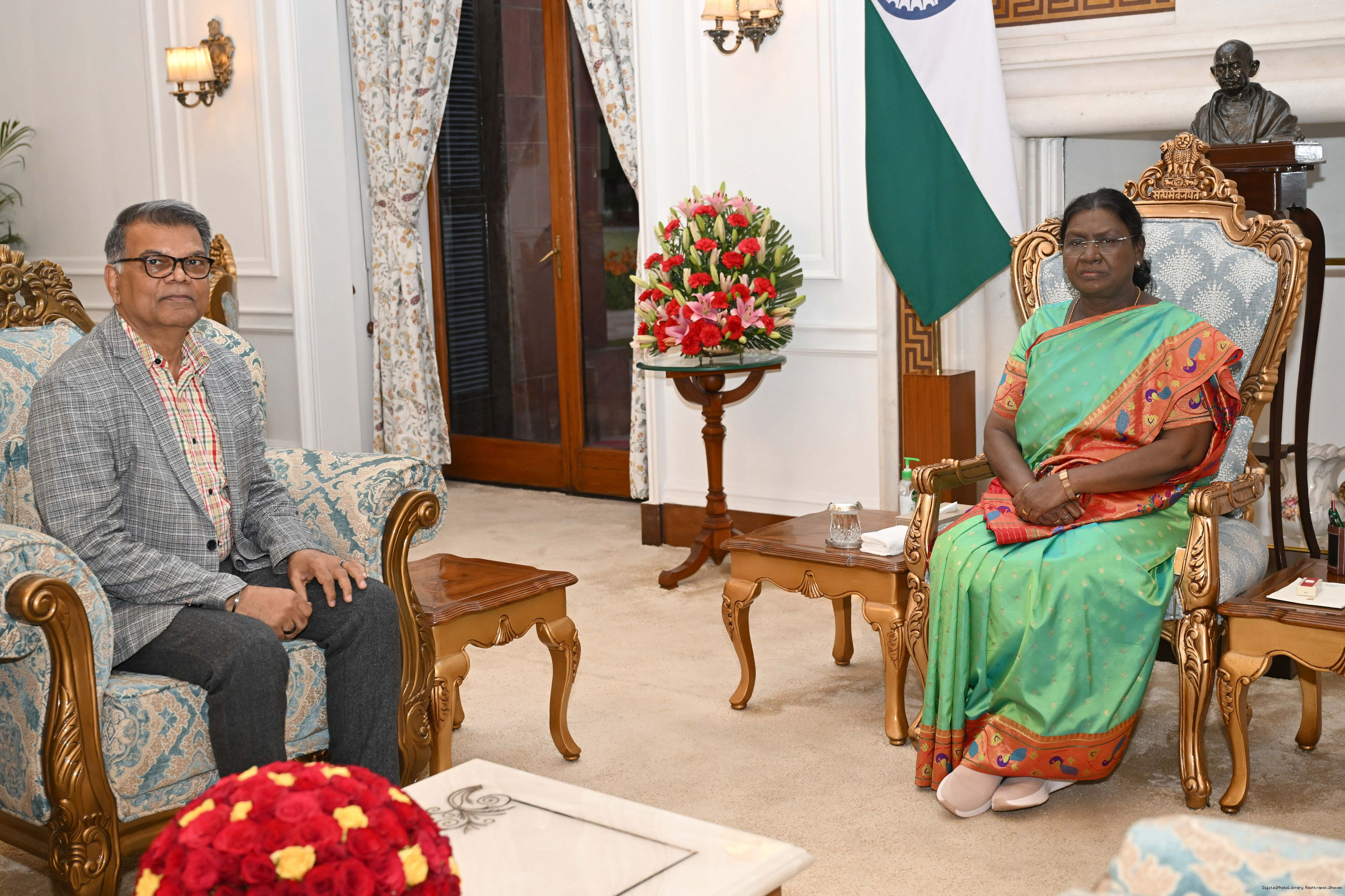 | Caption: | Prof (Dr) Sachidananda Mohanty, Executive Director, AIIMS, Awantipora, JK meetig with the President of India, Smt Droupadi Murmu at Rashtrapati Bhavan on February 23, 2026. |