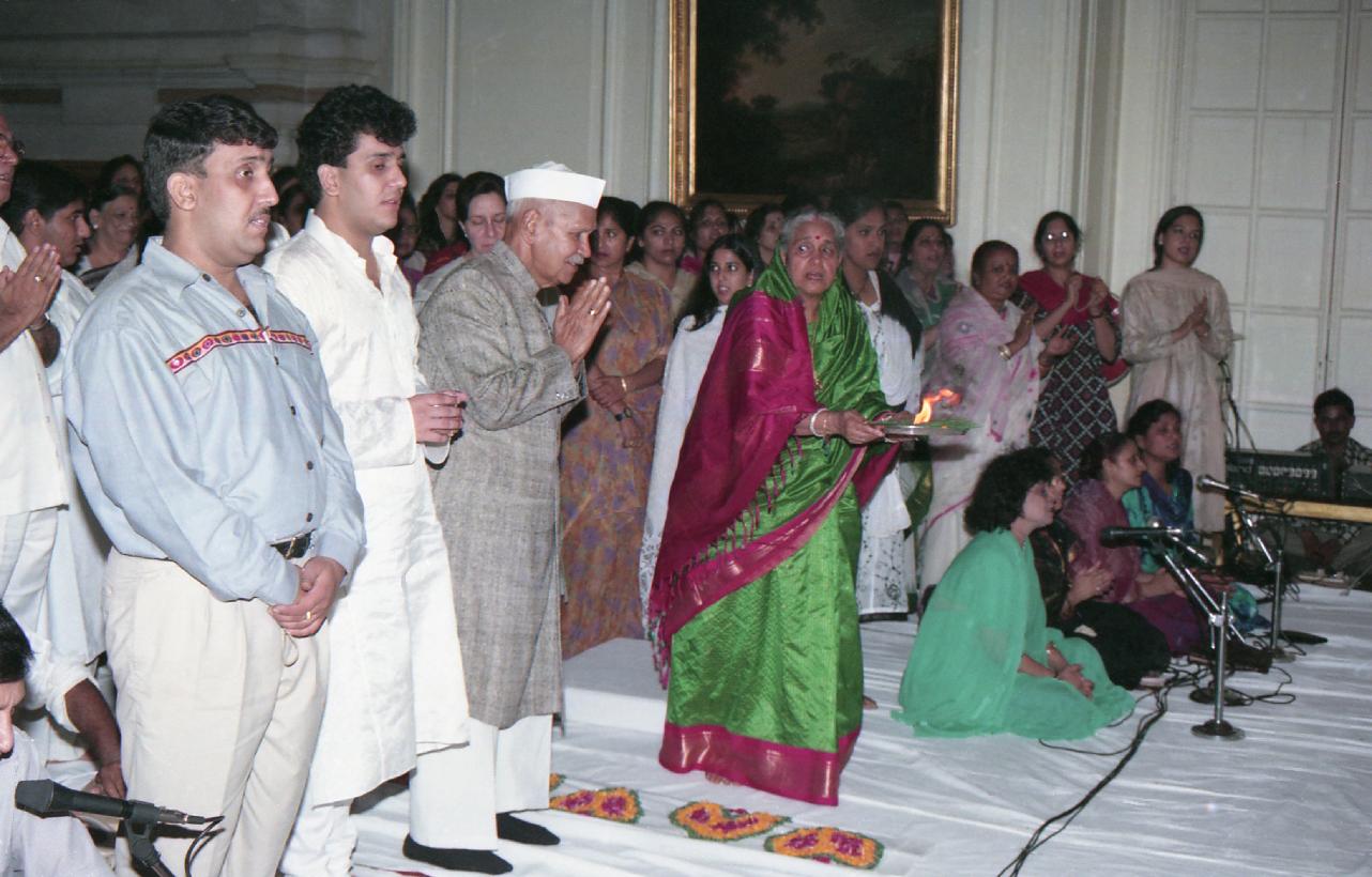 | Caption: | The President of India, Dr. Shankar Dayal Sharma attending Sai Bhajans at Rashtrapati Bhavan in New Delhi on July 31, 1996. |