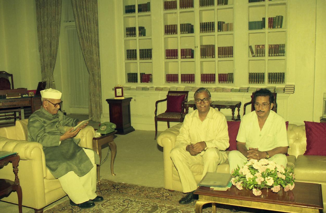 | Caption: | The President of India, Dr. Shankar Dayal Sharma meeting with Shri Ibrahim Qureshi, Chairman, Minorities Commission, Madhya Pradesh with one other at Rashtrapati Bhavan in New Delhi on July 08, 1996. |