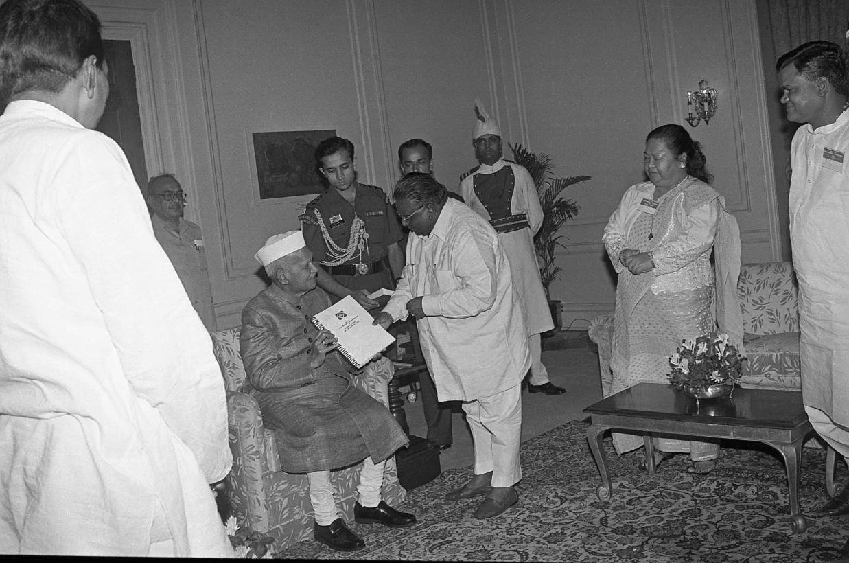 | Caption: | The President of India, Dr. Shankar Dayal Sharma meeting with Members and officials of National Commission for SC/ST at Rashtrapati Bhavan in New Delhi on July 10, 1996. |