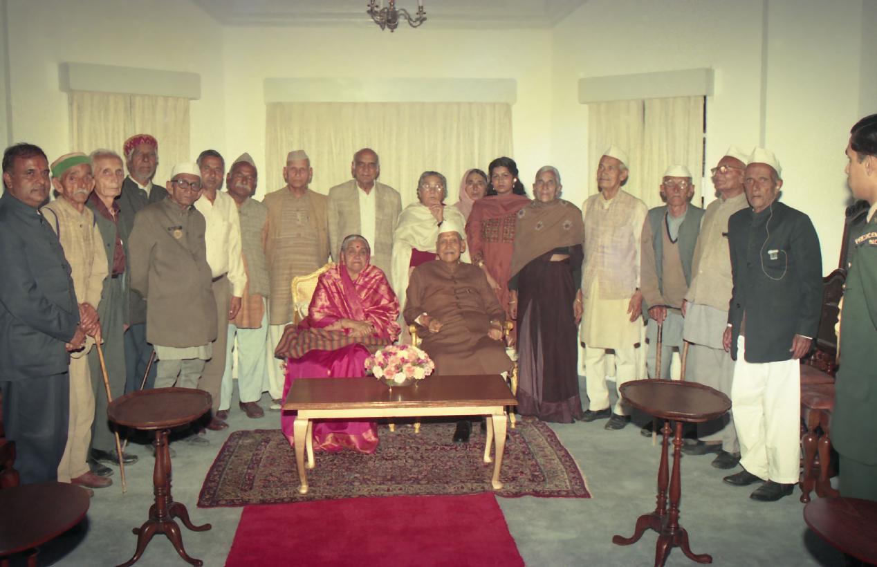 | Caption: | The President of India, Dr. Shankar Dayal Sharma hosting Tea to Freedom Fighters at Mashobra, Shimla on June 25, 1996. |
