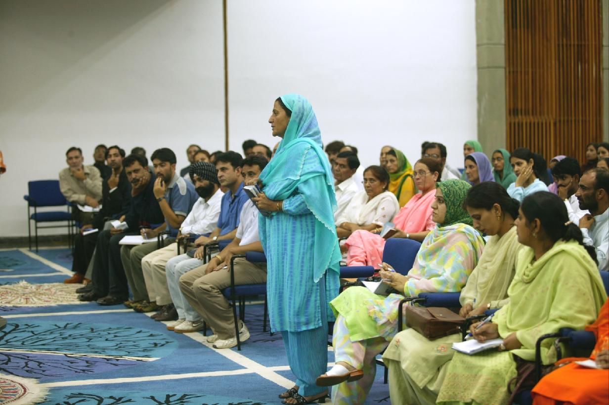 | Caption: | The President of India, Dr A P J Abdul Kalam interacting with the Teachers at Srinagar in Jammu & Kashmir on Aug 19, 2004 |