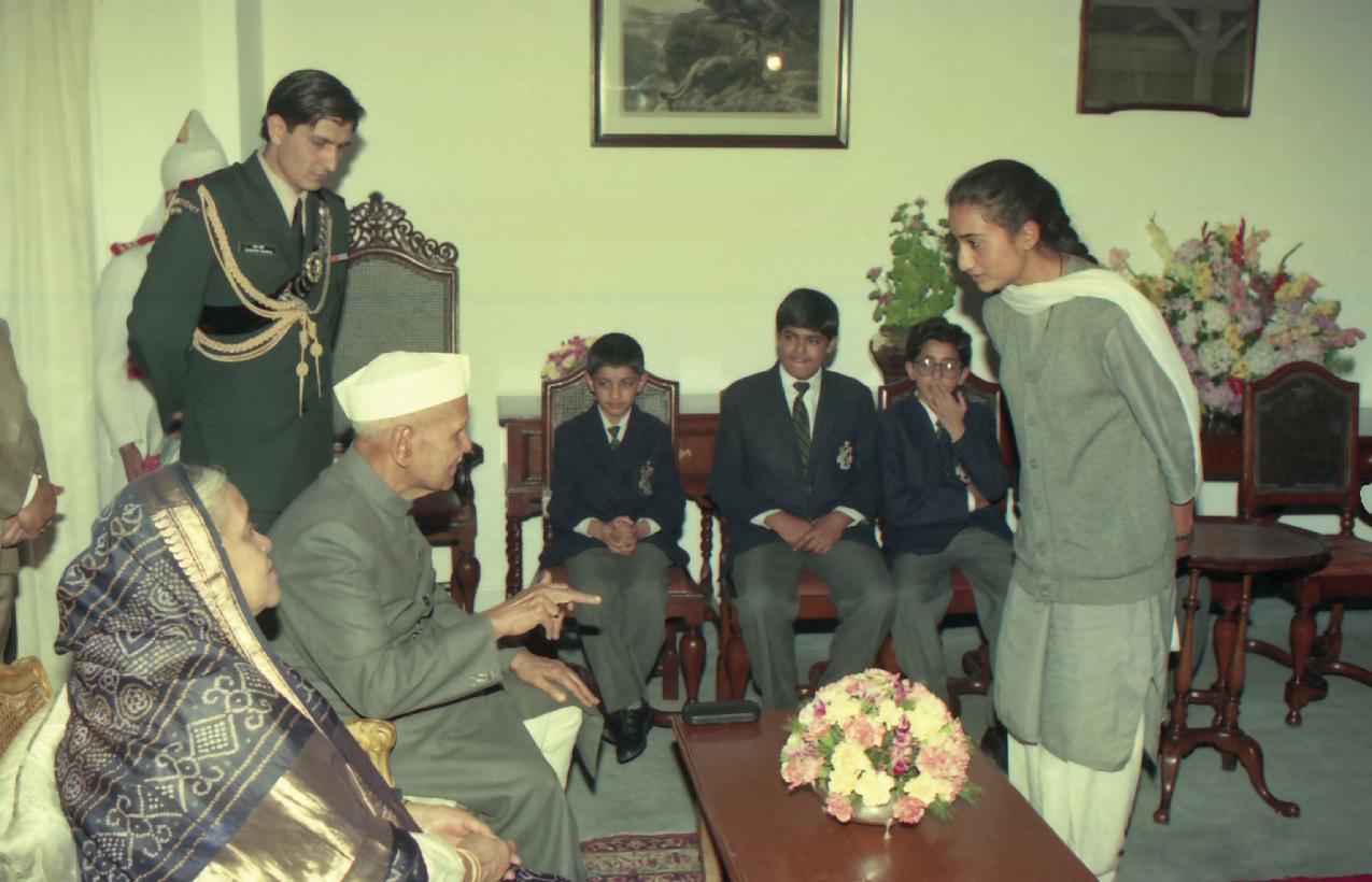 | Caption: | The President of India, Dr. Shankar Dayal Sharma meeting with School Childrens at Mashobra, Shimla on June 26, 1996. |