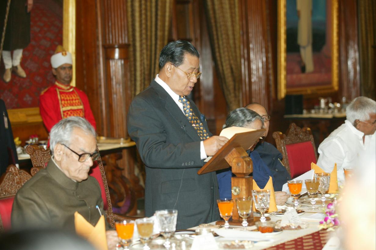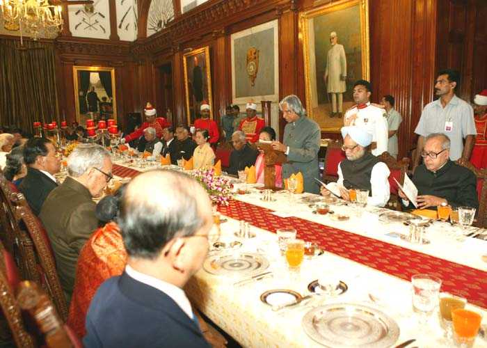 | Caption: | The President of India, Dr A P J Abdul Kalam at the Banquet Hosted in Honour of the Chairman, SPDC of Union of Myanmar, HE Senior General Than Shwe and Daw Kyaing Kyaing at the Banquet Hall of Rashtrapati Bhavan in New Delhi on Oct 25, 2004 |