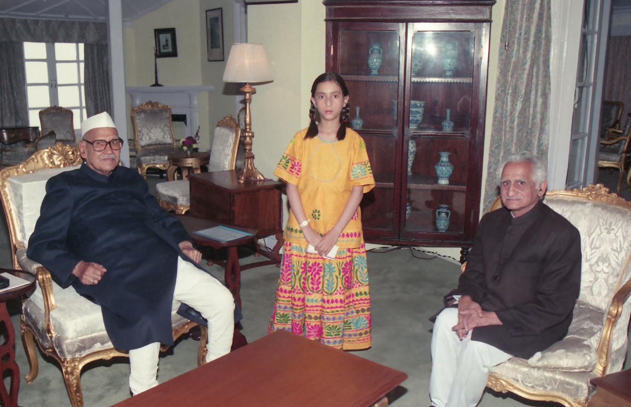 | Caption: | The President of India, Dr. Shankar Dayal Sharma meeting with Shri Vikram Singh Katoch, Chairman, HP Agro Industries Corporation Ltd. With his grand-daughter, at Mashobra, Shimla on June 23, 1996. |