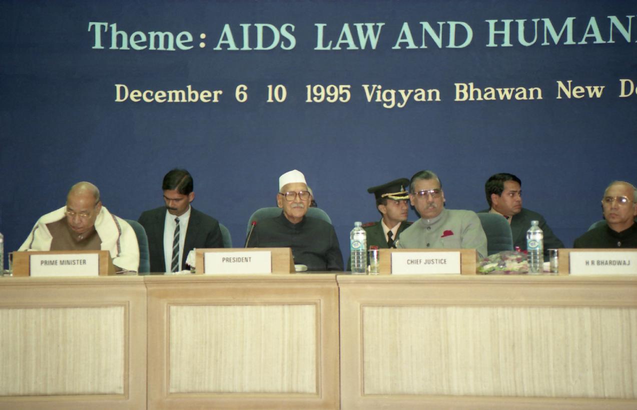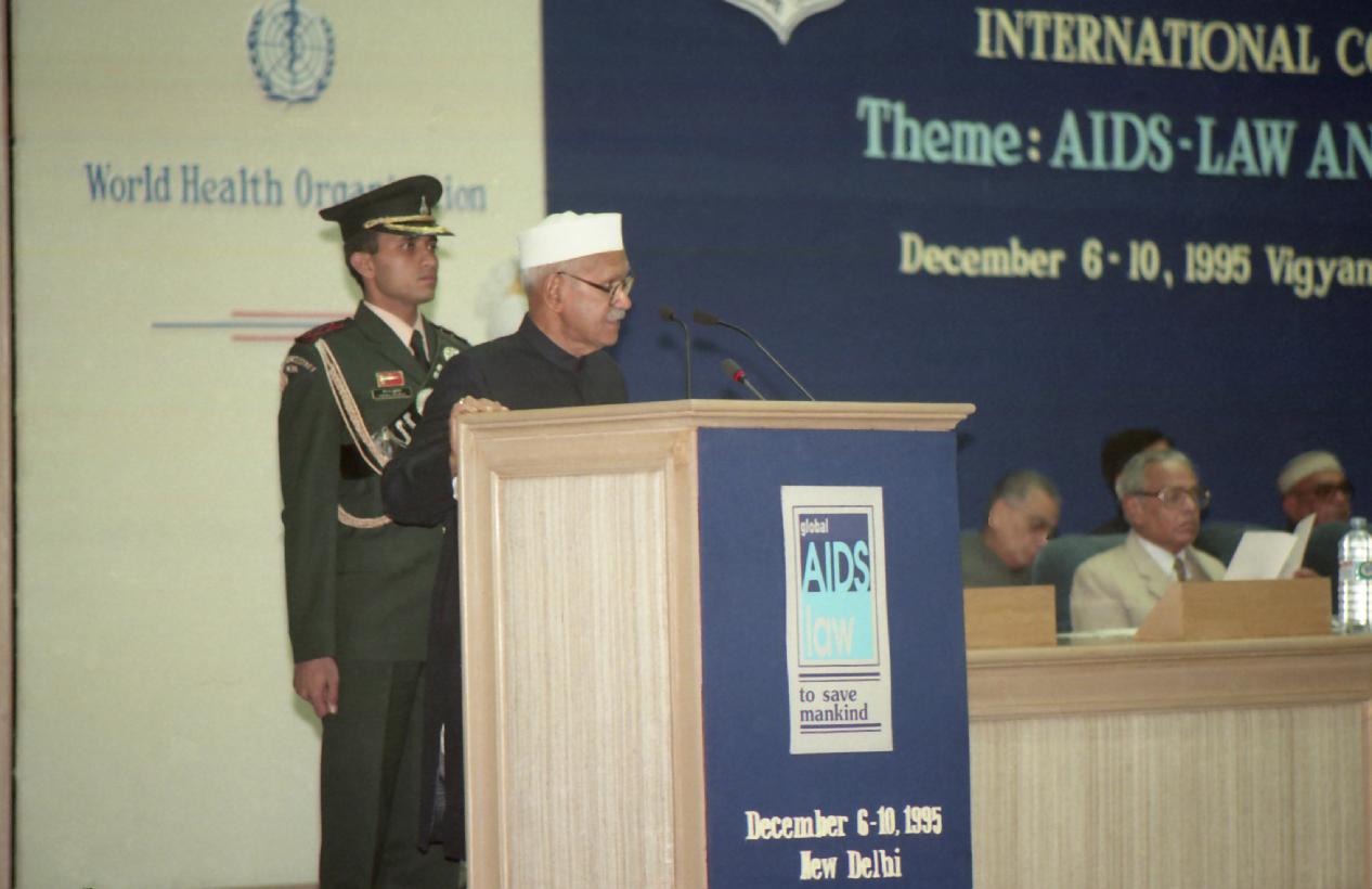 | Caption: | The President of India, Dr. Shankar Dayal Sharma inaugurating the International Conference on 'AIDS-Law and Humanity' at Vigyan Bhavan in New Delhi on December 06, 1995. |