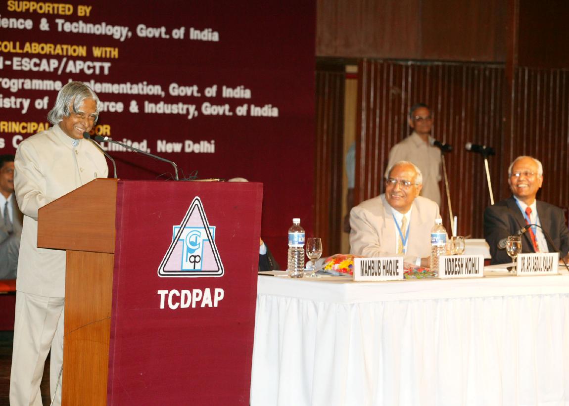 | Caption: | The President of India, Dr A P J Abdul Kalam inaugurating the Annual Conference of Technical Consultancy Development Programme for Asia the Pacific at India Habitat Centre Lodhi Road in New Delhi on Oct 12, 2004 |