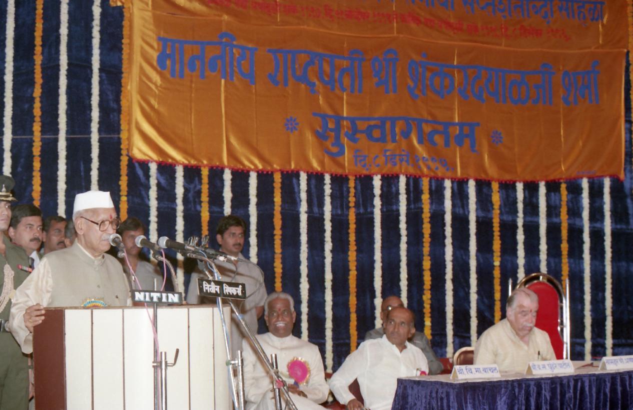 | Caption: | The President of India, Dr. Shankar Dayal Sharma addressing the function to mark the 700th year of Sanjeevan Samadhi of Sant Dnyaneshwar, at Alandi, Pune, in Maharashtra on December 08, 1995. |