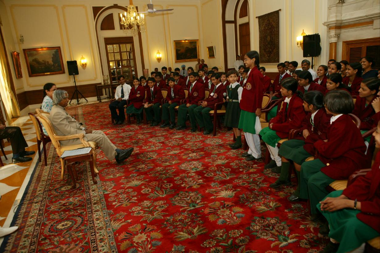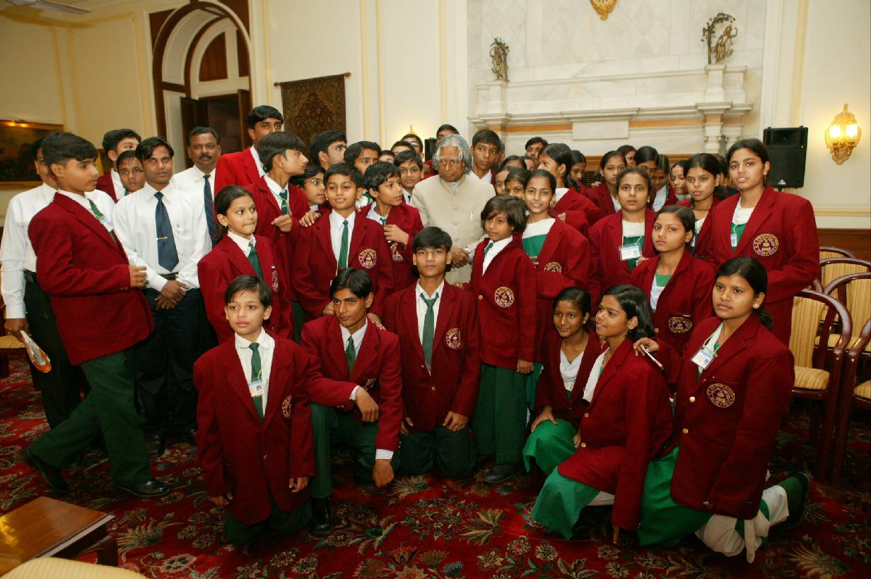 | Caption: | The Students from Bhoo Devi Varshney Inter College, Bilsi (Budaun), Uttar Pradesh calling on the President of India, Dr A P J Abdul Kalam at the Yellow Drawing Room of Rashtrapati Bhavan in New Delhi on Oct 20, 2004 |