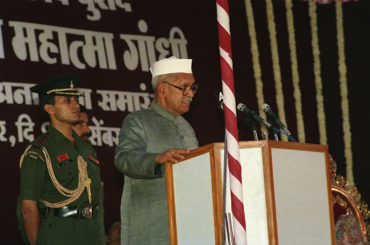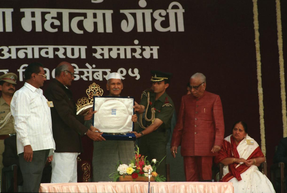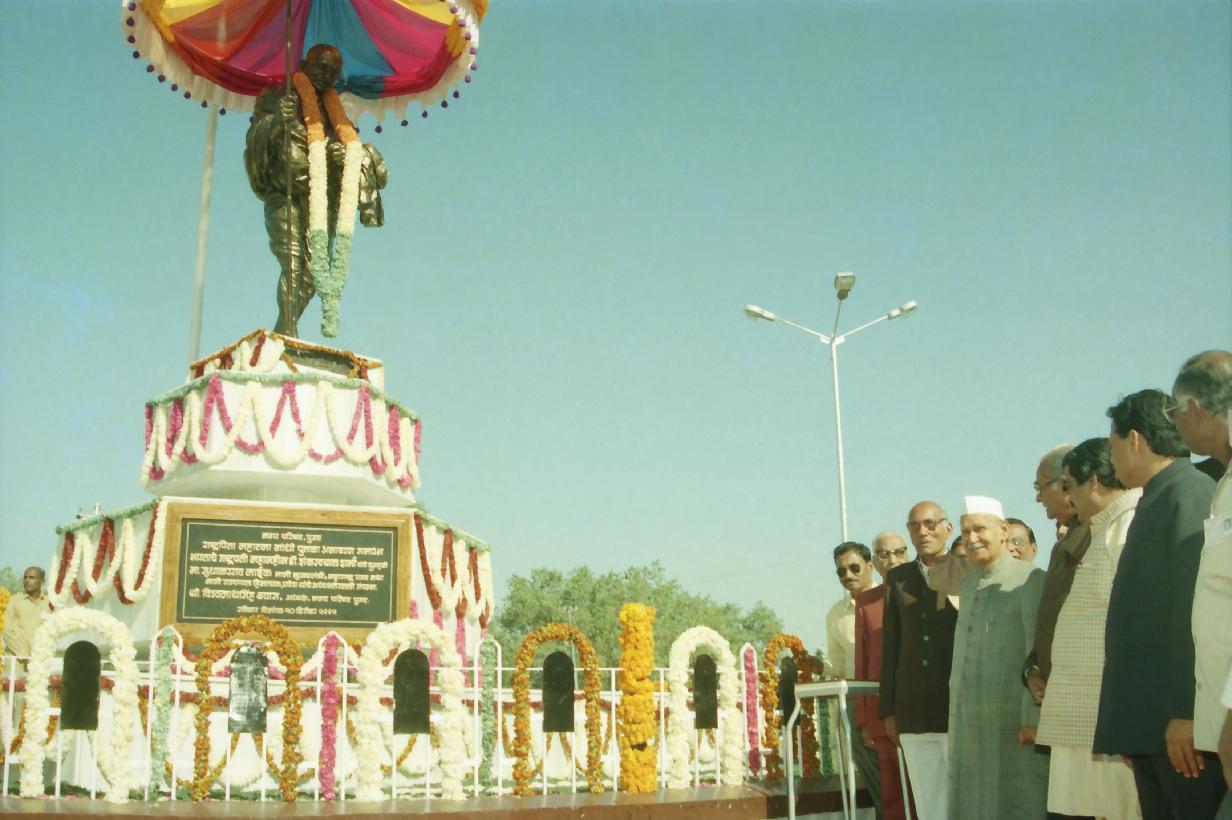 | Caption: | The President of India, Dr. Shankar Dayal Sharma unveiling the Statue of Mahatma Gandhi, at Pusad, in Maharashtra on December 10, 1995. |