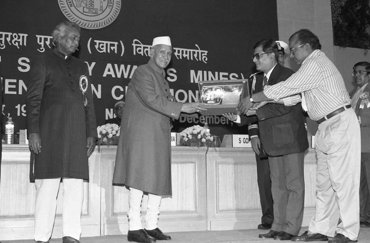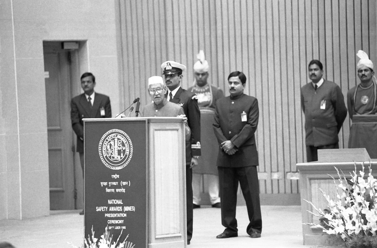 | Caption: | The President of India, Dr. Shankar Dayal Sharma presenting National Safety Awards (Mines) for 1993 at Vigyan Bhavan in New Delhi on December 11, 1995. |