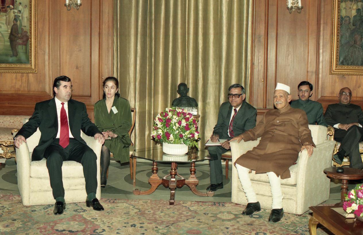| Caption: | The President of the Republic of Tajikistan, H.E. Mr. Emomali Sharipovich Rakhmonov calling on the President of India, Dr. Shankar Dayal Sharma, at Rashtrapati Bhavan in New Delhi on December 11, 1995. |