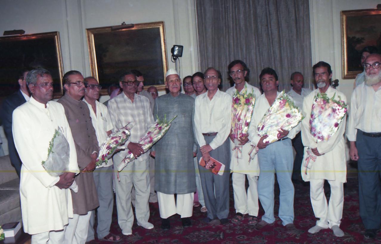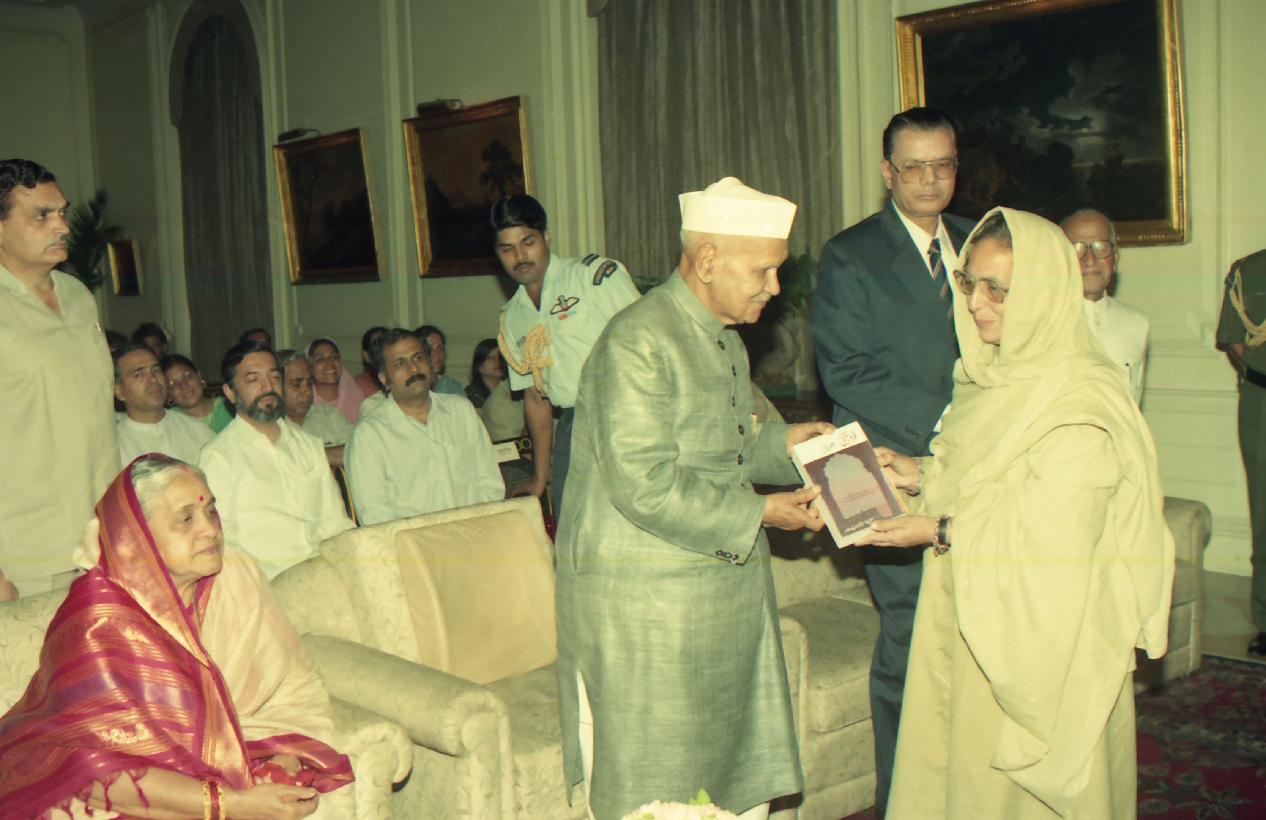 | Caption: | The President of India, Dr. Shankar Dayal Sharma receiving a copy of the book "Bhopal Number" edited by Dr. Razia Hamid and witnessing Mushiara at Rashtrapati Bhavan in New Delhi on June 16, 1996. |