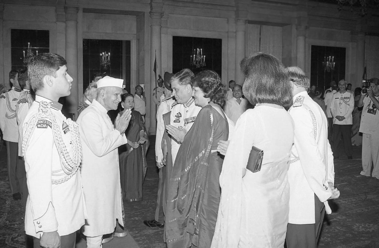 | Caption: | The President of India, Dr. Shankar Dayal Sharma hosting a dinner to the participants of the Combined Commanders Bi-annual Conference and their spouses at Rashtrapati Bhavan in New Delhi on June 14, 1996. |