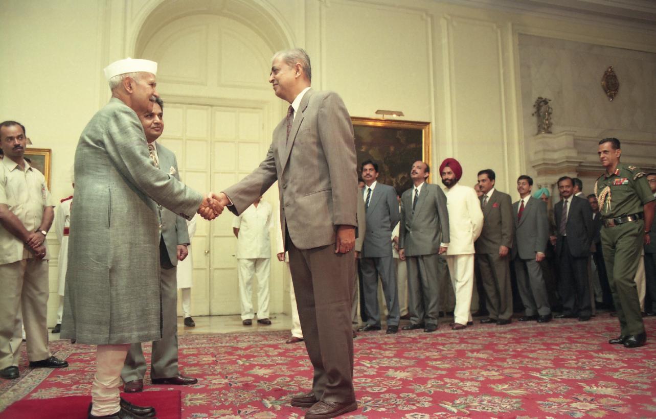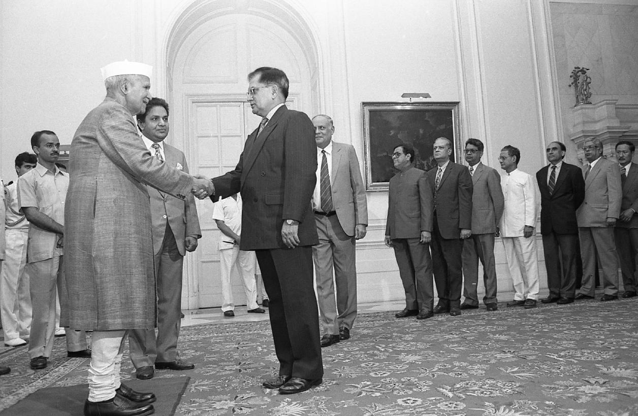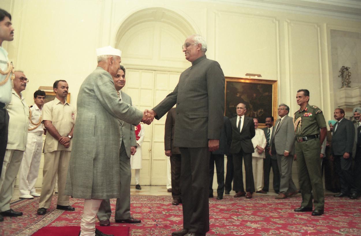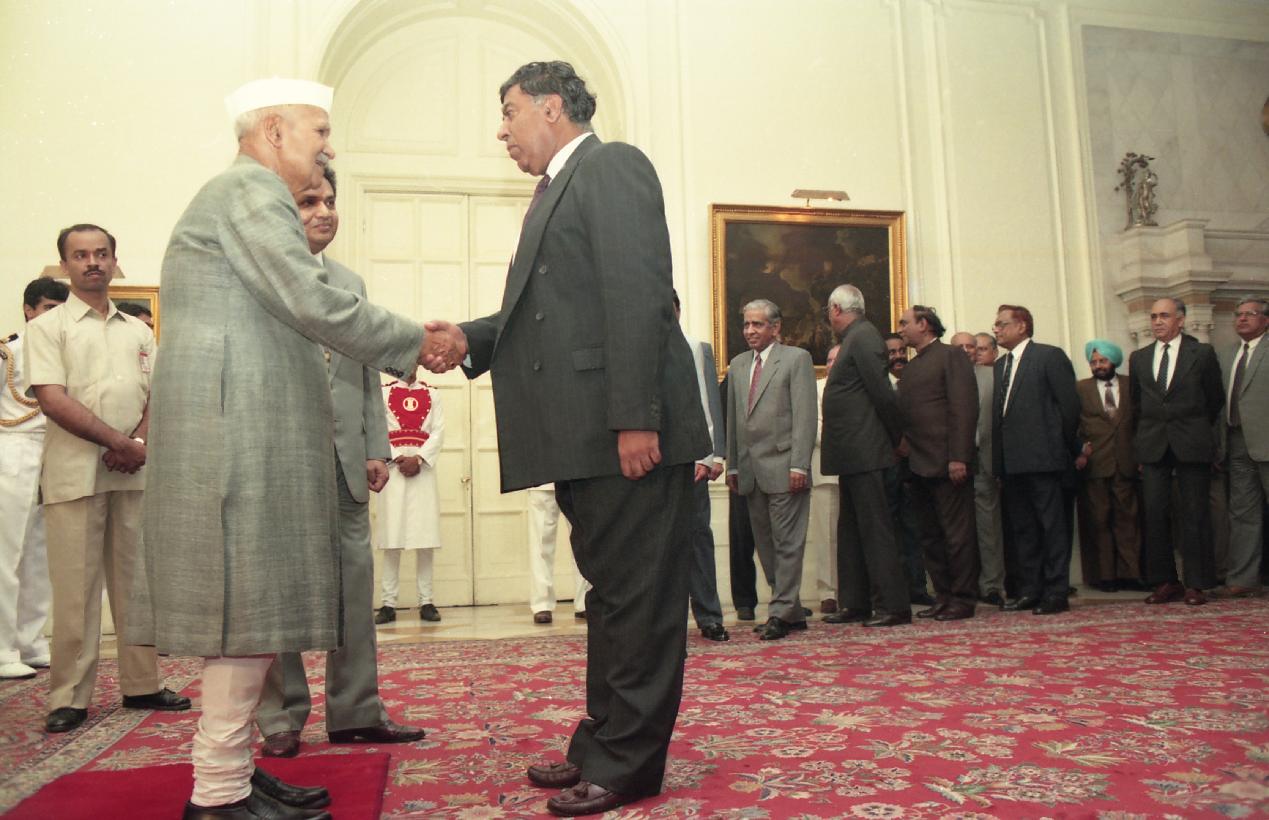 | Caption: | The President of India, Dr. Shankar Dayal Sharma meeting with Delegates of the Conference of the DGPs/IGPs of States/Uts and Heads of Central Police Organisations at Rashtrapati Bhavan in New Delhi on July 24, 1996. |
