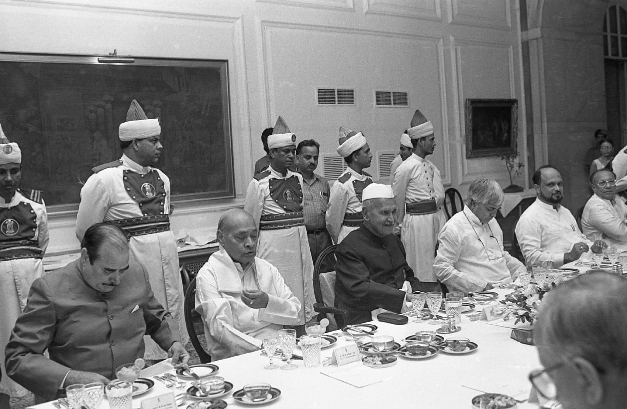 | Caption: | The President of India, Dr. Shankar Dayal Sharma hosting Dinner to Chief Ministers at Rashtrapati Bhavan in New Delhi on July 04, 1996. |