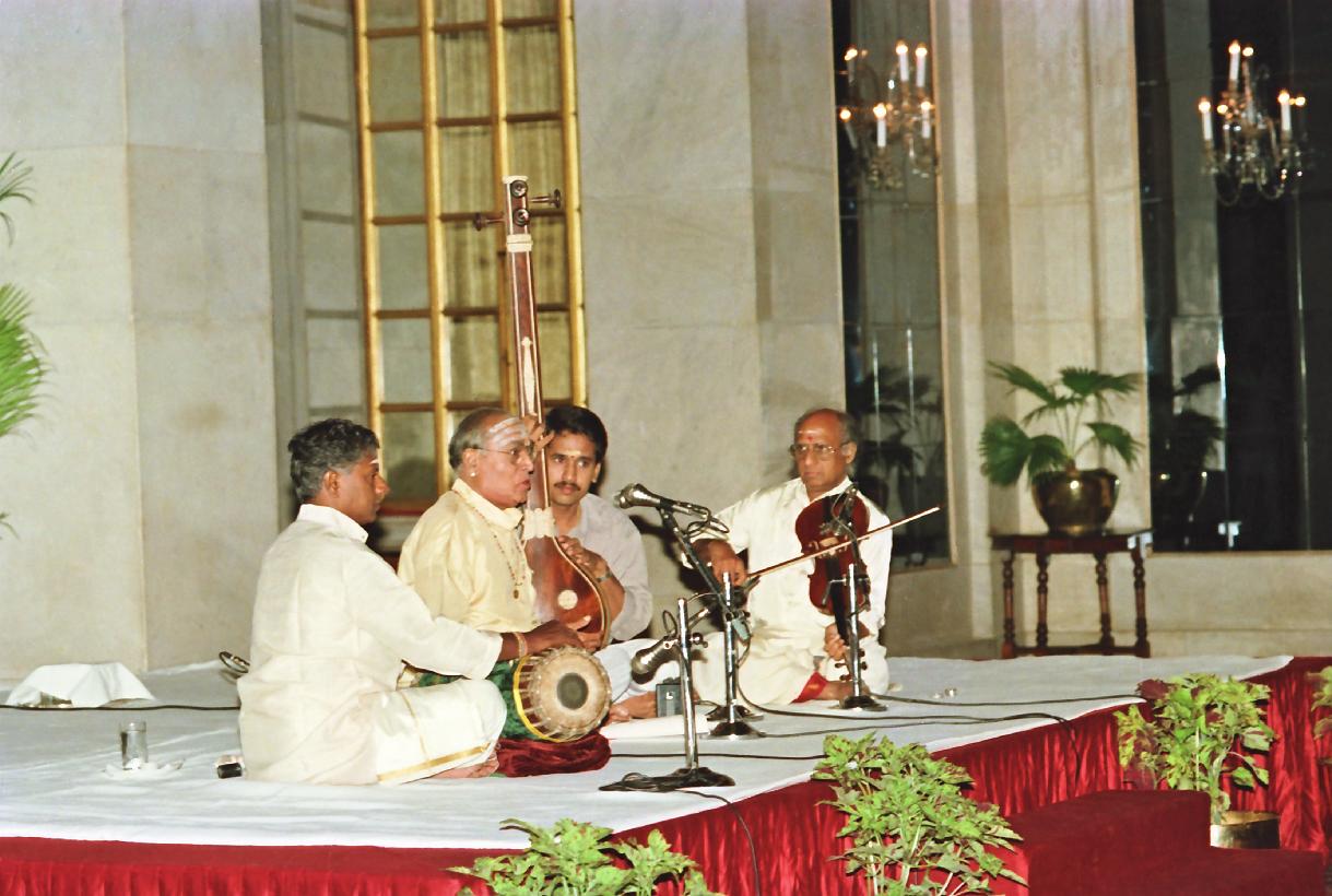 | Caption: | The President of India, Dr. Shankar Dayal Sharma witnessing Carnatic Music Recital by Shri B. Rajam Iyer and Party at Rashtrapati Bhavan in New Delhi on July 25, 1996. |