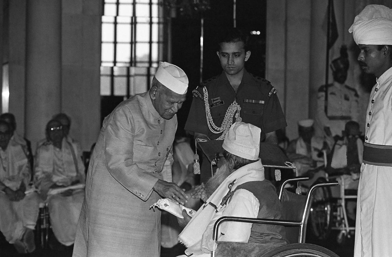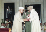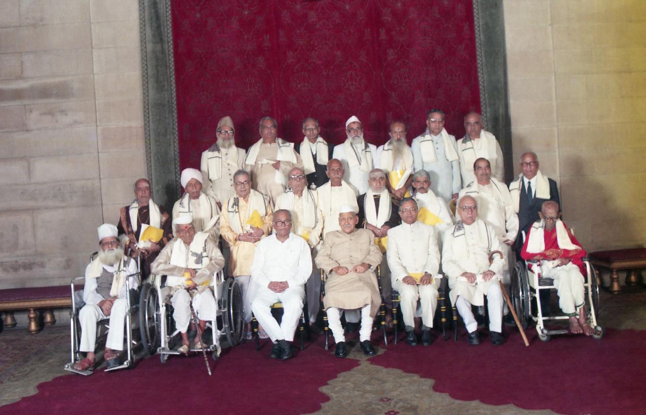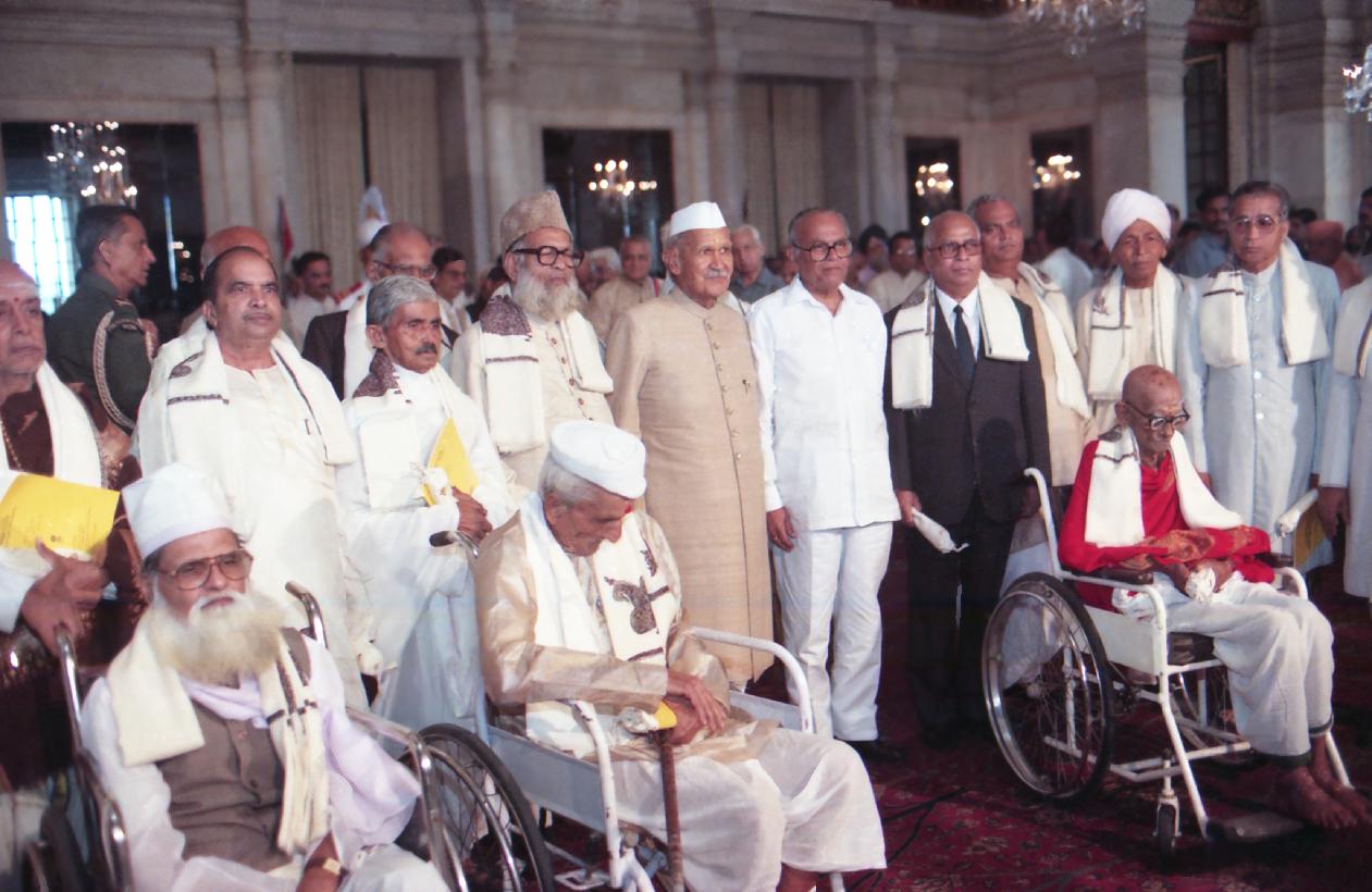 | Caption: | The President of India, Dr. Shankar Dayal Sharma awarding Certificate of Honour to Scholars of Sanskrit Arabic and Persian languages, at Rashtrapati Bhavan in New Delhi on August 10, 1996. |