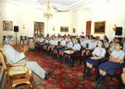 | Caption: | The Students from Naval Public School Chanakyapuri calling on the President of India, Dr A P J Abdul Kalam at the Yellow Drawing Room of Rashtrapati Bhavan in New Delhi on Aug 23, 2004 |