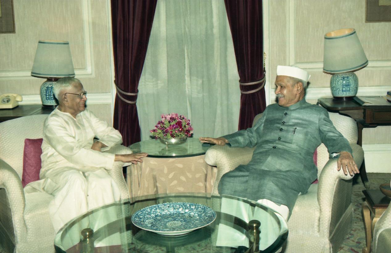 | Caption: | The President of India, Dr. Shankar Dayal Sharma meeting with former President of India, Shri R. Venkataraman at Rashtrapati Bhavan in New Delhi on May 18, 1995. |