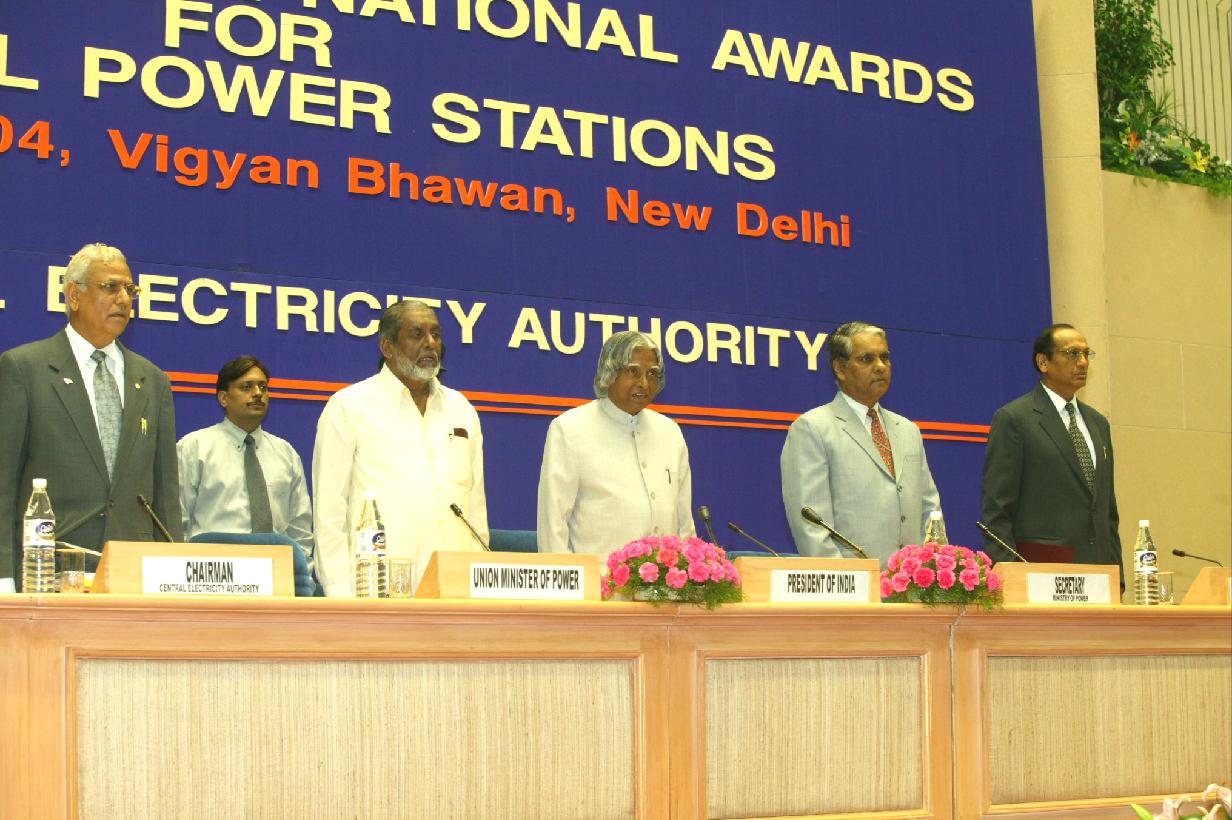 | Caption: | The President of India, Dr A P J Abdul Kalam presenting the National Awards for Thermal Power Stations at Vigyan Bhavan in New Delhi on Aug 24, 2004 |