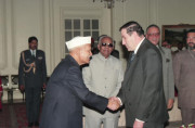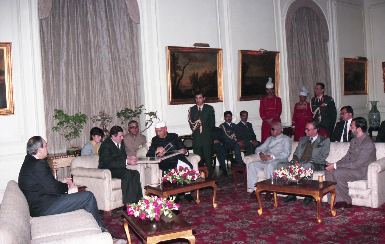 | Caption: | The President of India, Dr. Shankar Dayal Sharma with H.E. Mr. Levon Ter-Petrossian, President of the Republic of Armenia at Farewell tete-a-tete, at Rashtrapati Bhavan in New Delhi on December 15, 1995. |