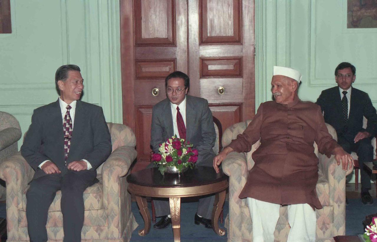 | Caption: | A Parliamentary delegation led by H.E. Mr. Dang Quan Thuy, Vice-Chairman of the Vietnamese National Assembly calling on the President of India, Dr. Shankar Dayal Sharma at Rashtrapati Bhavan in New Delhi on December 18, 1995. |