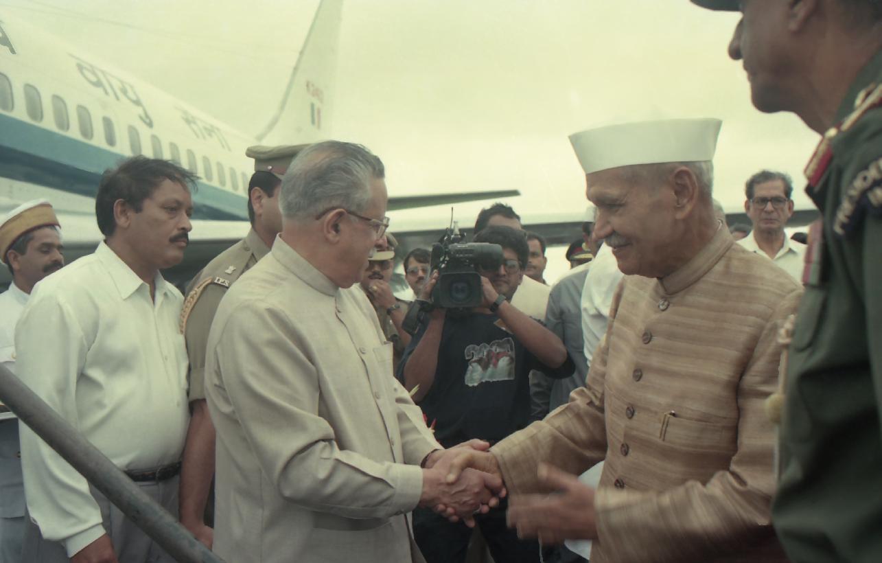 | Caption: | The President of India, Dr. Shankar Dayal Sharma being farewelled by the Governor, Madhya Pradesh, Shri Mohammad Shafi Qureshi , at Bhopal, Madhya Pradesh on August 05, 1996. |