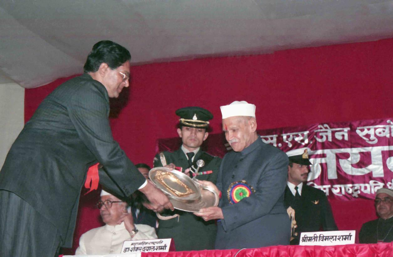 | Caption: | The President of India, Dr. Shankar Dayal Sharma inaugurating the Diamond Jubilee Celebrations of S.S. Jain Subodh Shiksha Samiti, at Jaipur on December 18, 1995. |