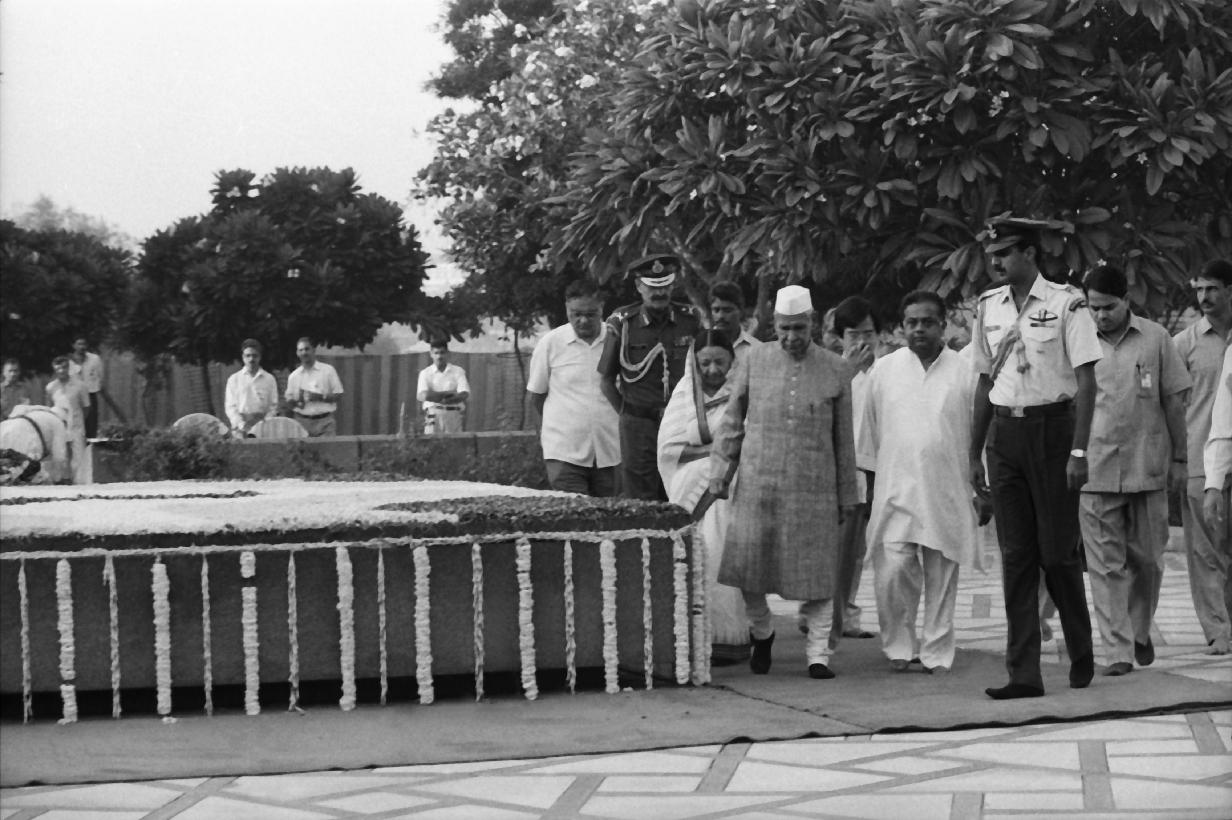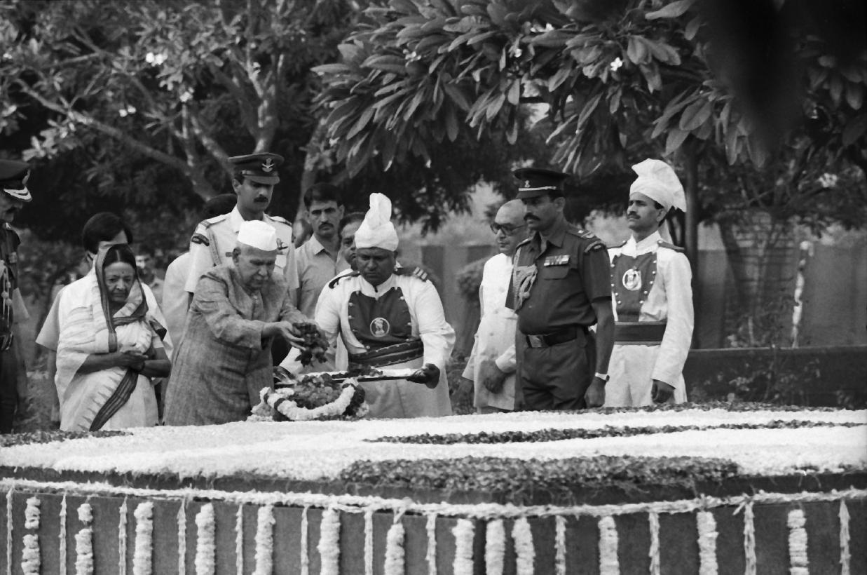 | Caption: | The President of India, Dr. Shankar Dayal Sharma paying homage at the Samadhi of Shri Lal Bahadur Shastri on the occasion of his Birth Anniversary at Vijay Ghat, in Delhi on October 02, 1994. |