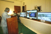 | Caption: | The President of India, Dr A P J Abdul Kalam launching the Programme Forward PTU of Punjab Technical University Jalandhar (Through Video Conferencing) at the TI Room of Rashtrapati Bhavan in New Delhi on Aug 25, 2004 |