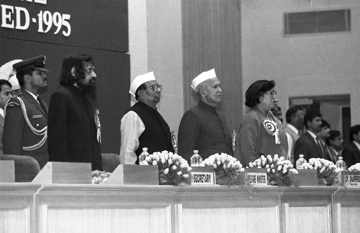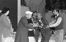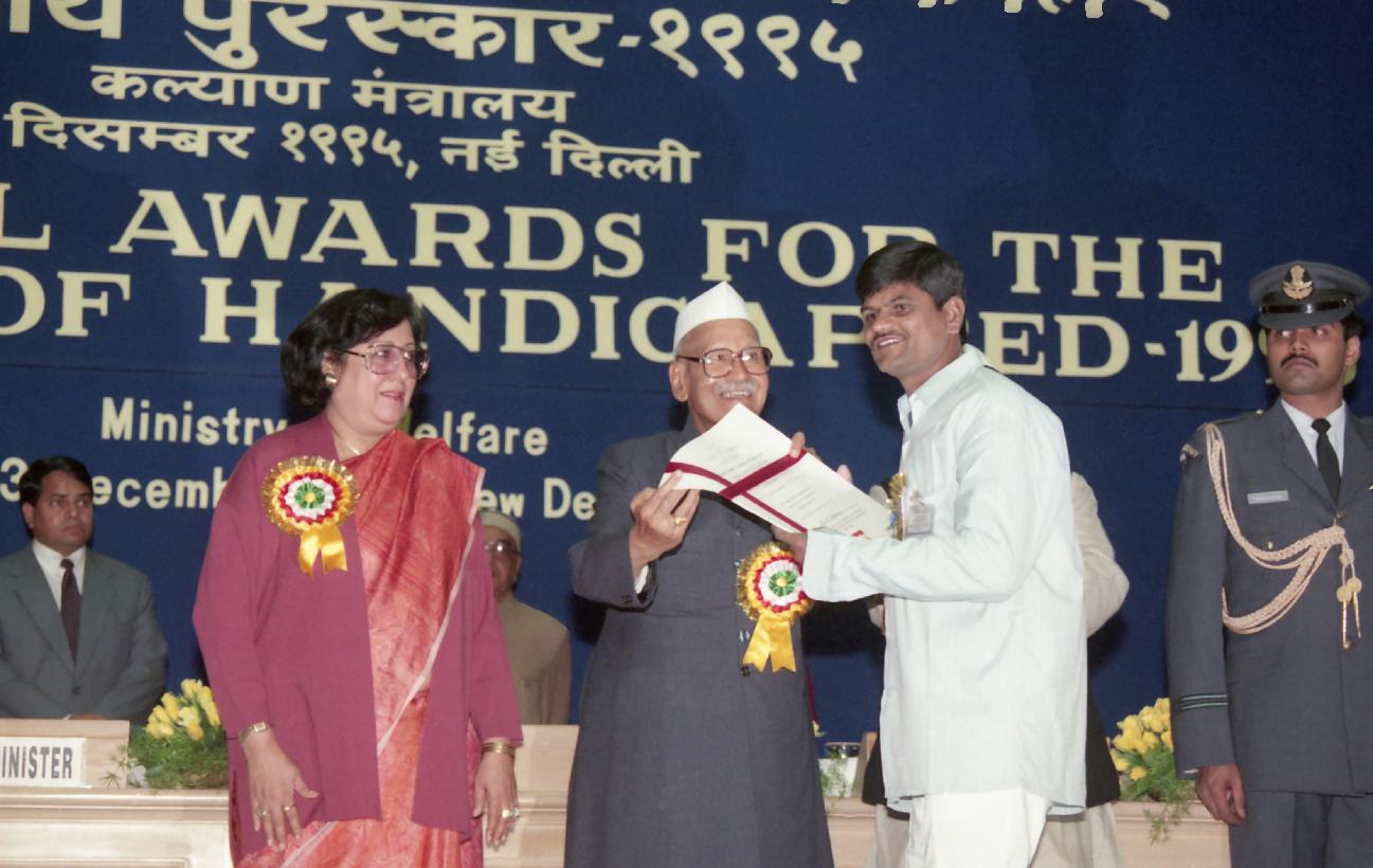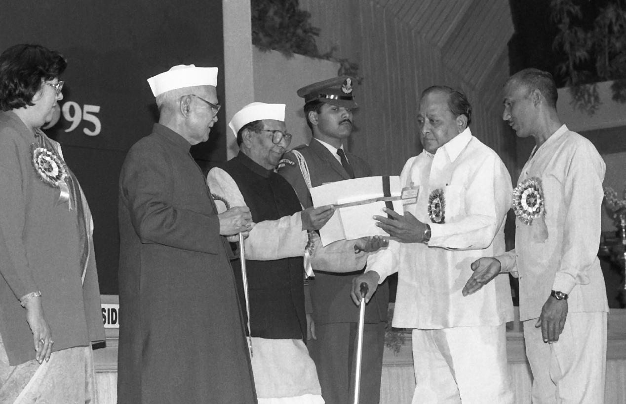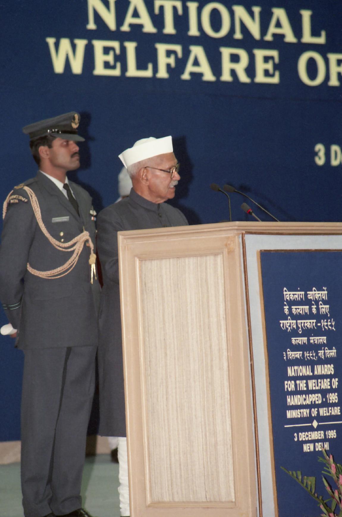 | Caption: | The President of India, Dr. Shankar Dayal Sharma presenting the National Awards for the Welfare of the Handicapped at Vigyan Bhavan in New Delhi on December 03, 1995. |