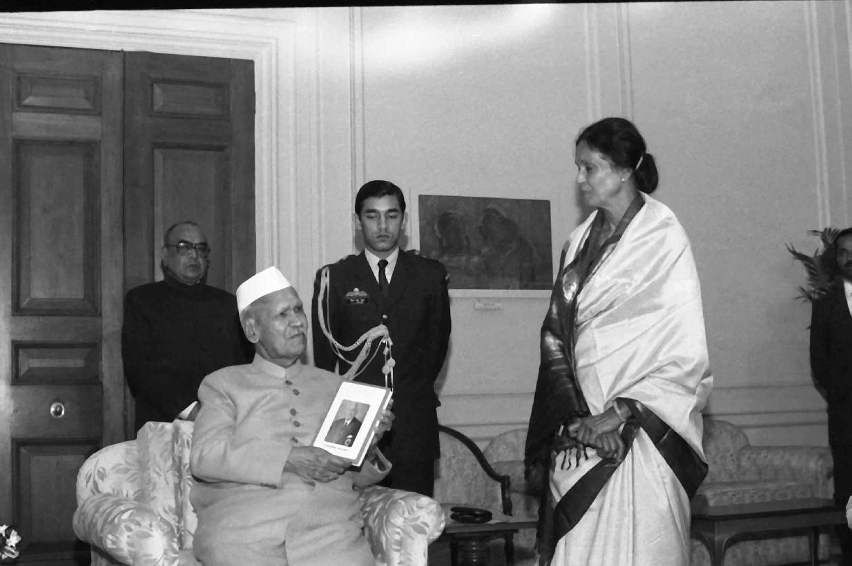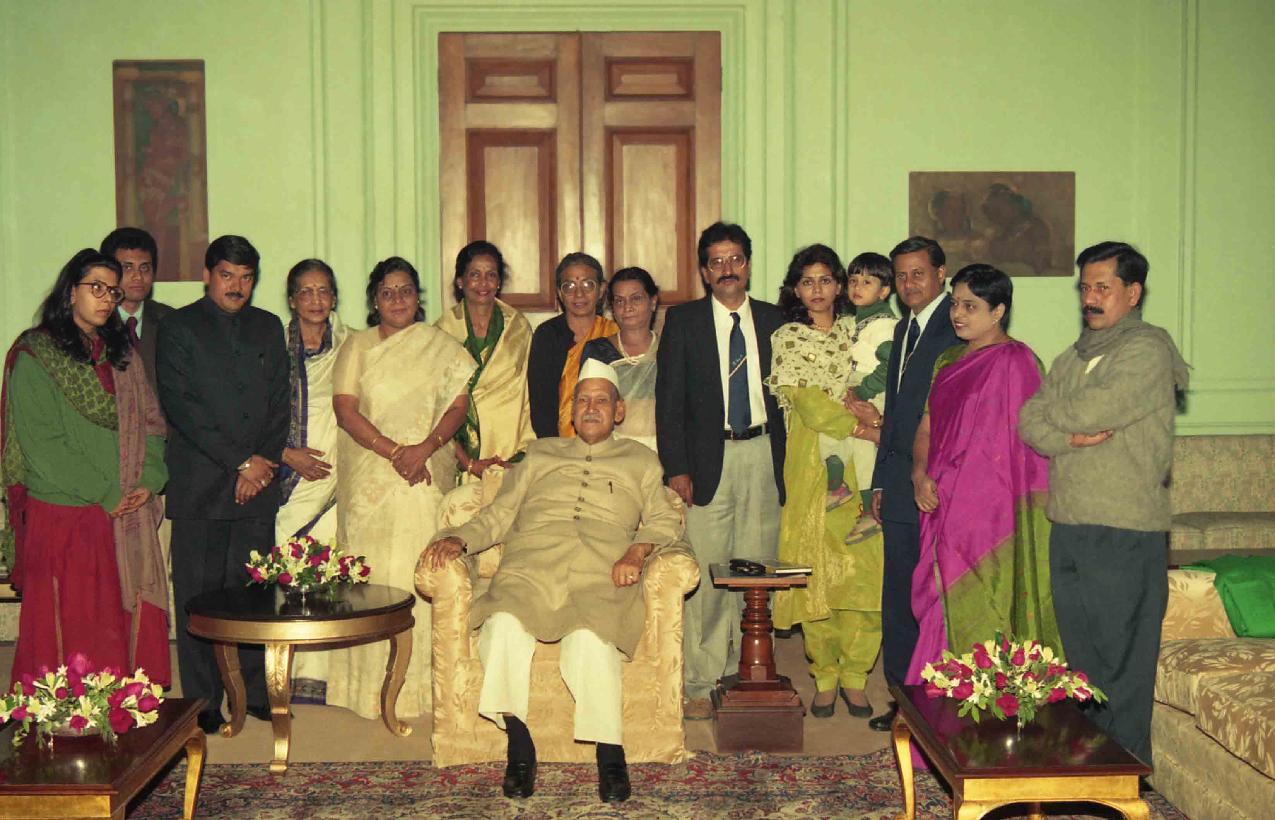 | Caption: | The President of India, Dr. Shankar Dayal Sharma receiving a copy of the book "C.K. Nayudu-Daughter Remembers" from Km. Chandra Nayudu at Rashtrapati Bhavan in New Delhi on December 23, 1995. |