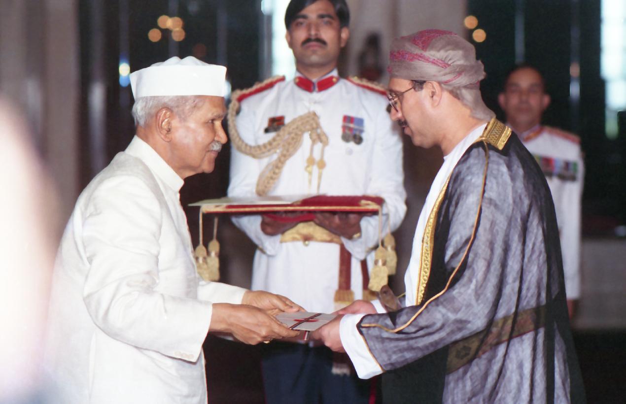 | Caption: | The Ambassador-Designate of Sultanate of Oman to India, H.E. Mr. Mohammed Tahir Aideed presenting his credentials to the President of India, Dr. Shankar Dayal Sharma at Rashtrapati Bhavan in New Delhi on October 28, 1994. |