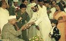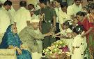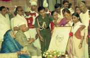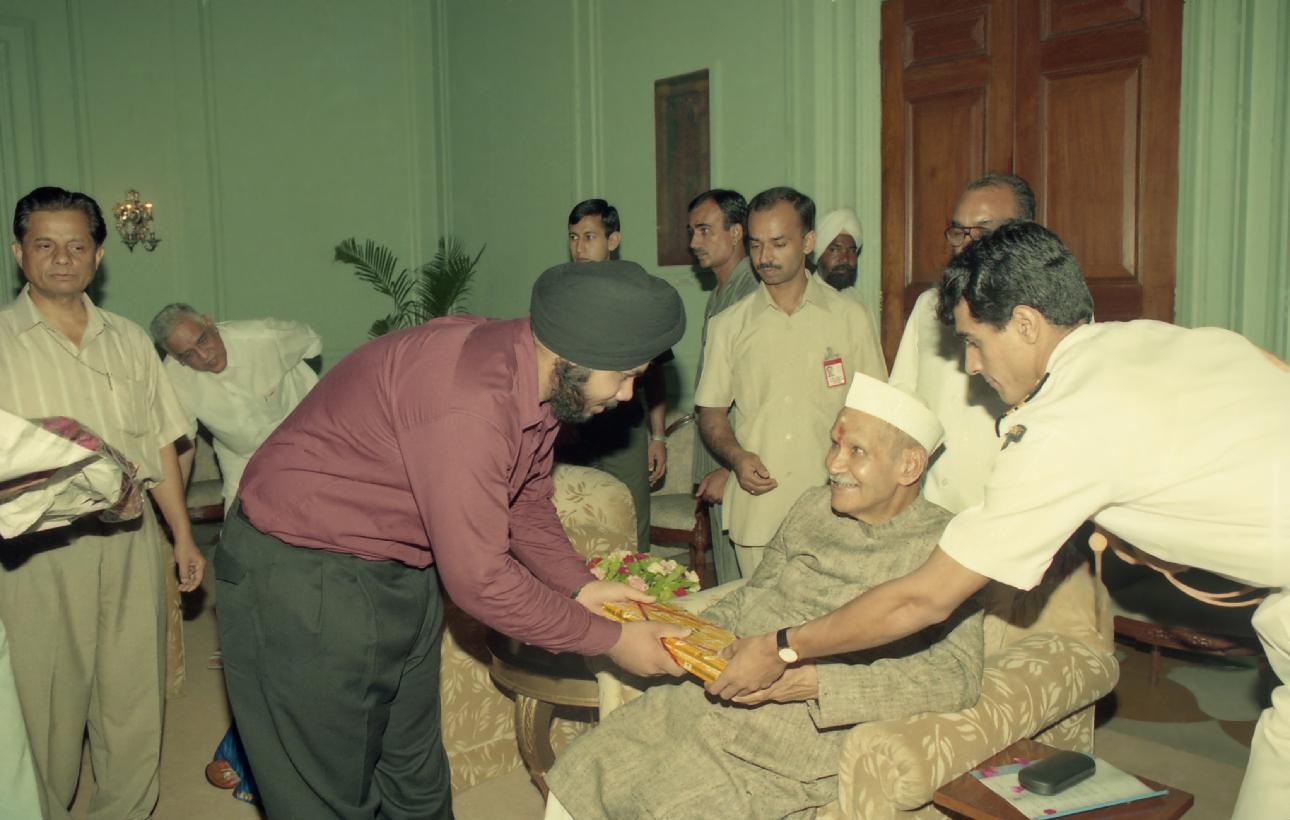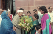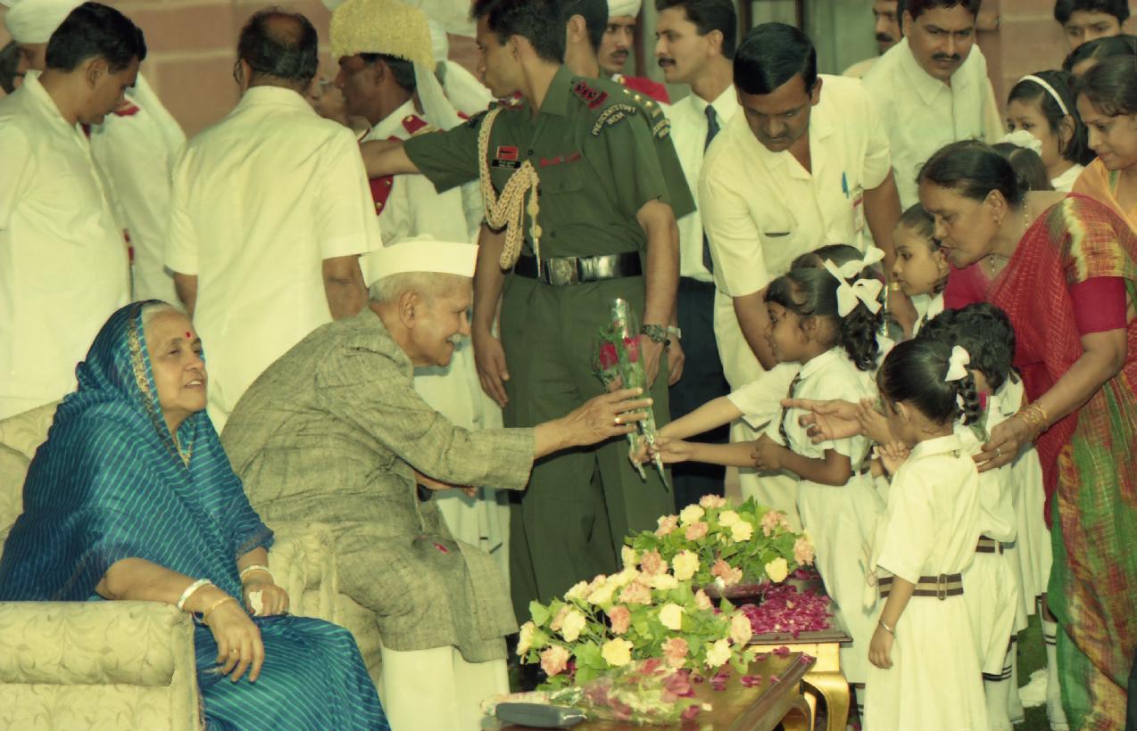 | Caption: | The President of India, Dr. Shankar Dayal Sharma receiving greetings from the Officers and Staff of Rashtrapati Bhavan and people of all walks of life on his birthday, at Rashtrapati Bhavan in New Delhi on August 19, 1996. |