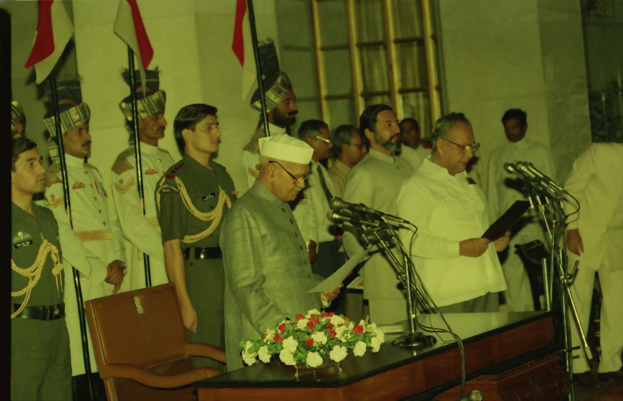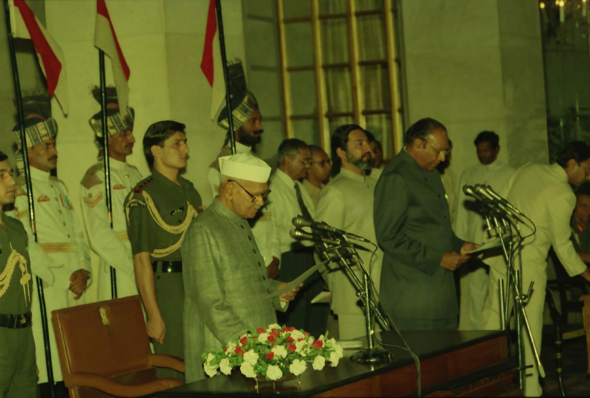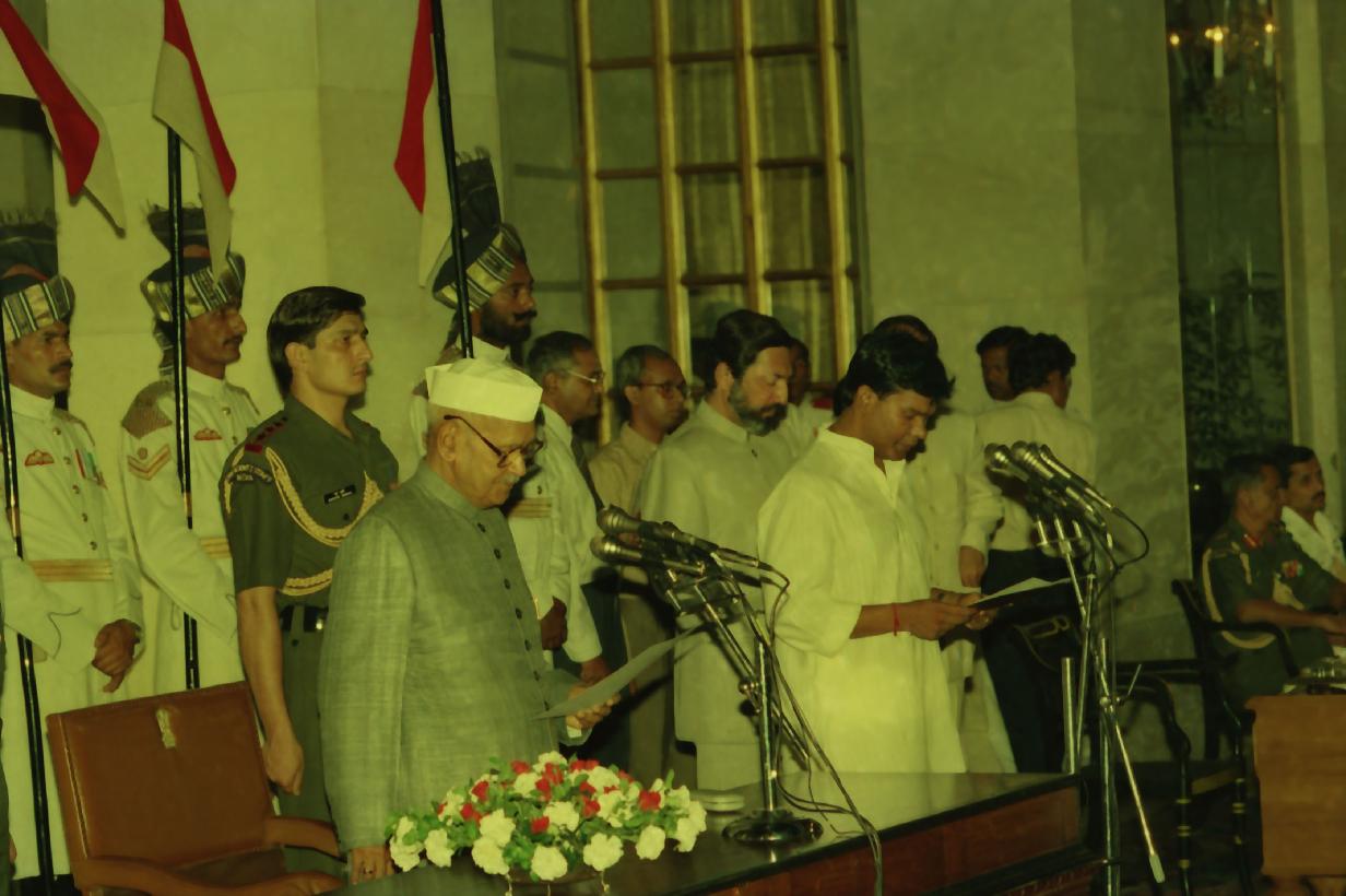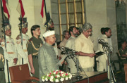 | Caption: | The President of India, Dr. Shankar Dayal Sharma administering oath to Council of Ministers, at a Swearing-in Ceremony, at Rashtrapati Bhavan in New Delhi on June 28, 1996. |