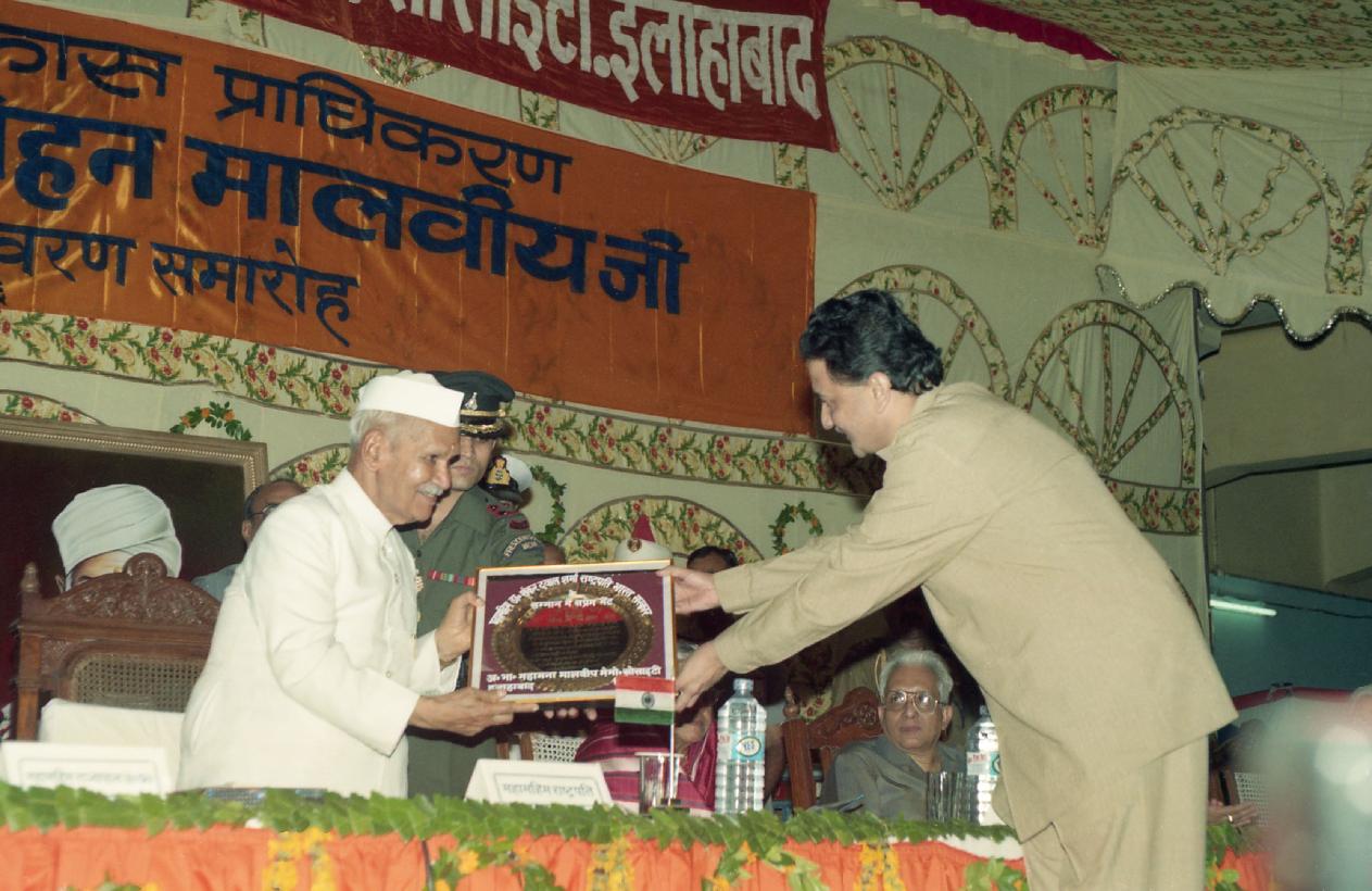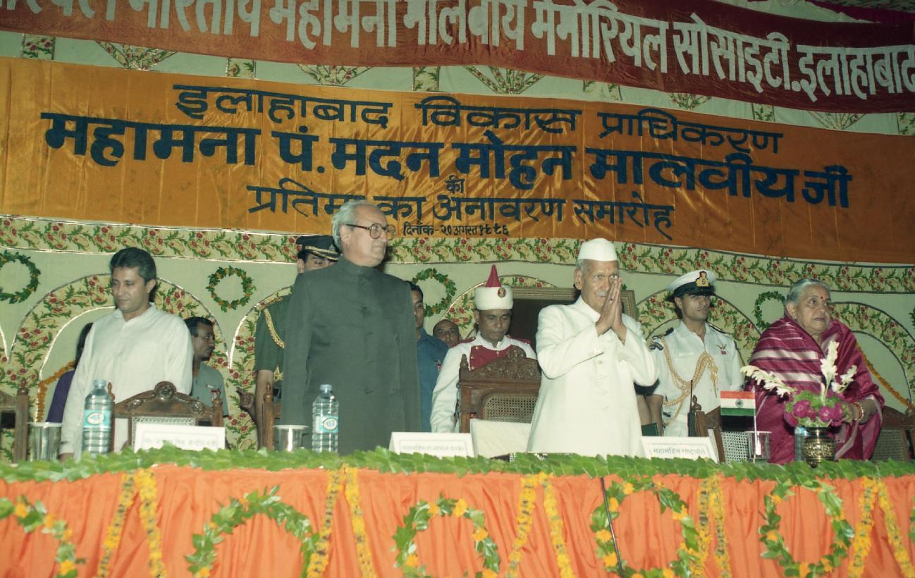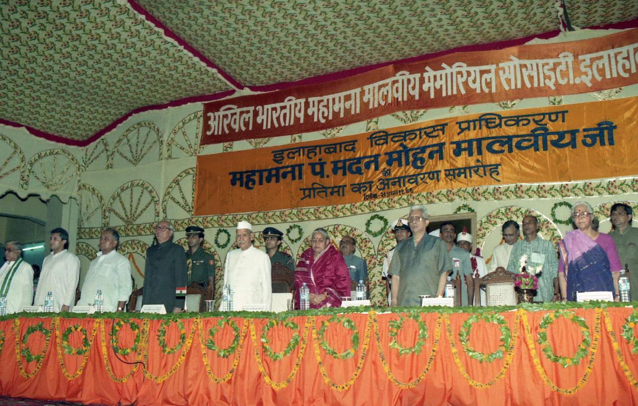 | Caption: | The President of India, Dr. Shankar Dayal Sharma addressing at Statue unveiling ceremony of Mahamana Pandit Madan Mohan Malviya, at Allahabad, Uttar Pradesh on August 20, 1996. |