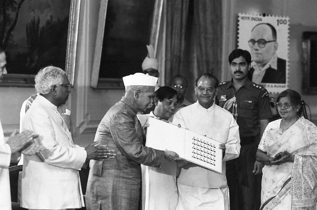 | Caption: | The President of India, Dr. Shankar Dayal Sharma releasing a postal Stamp on Late Shri R.S. Ruikar at Rashtrapati Bhavan in New Delhi on May 01, 1995. |