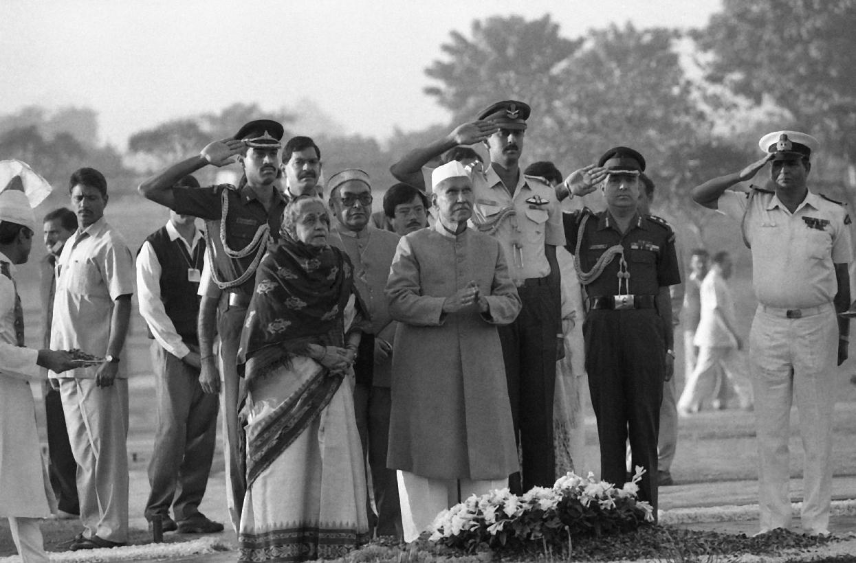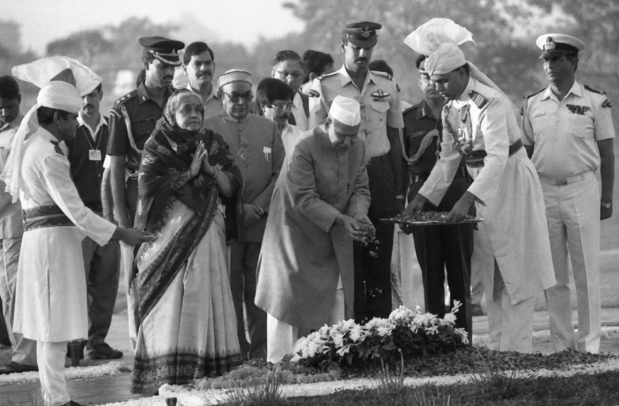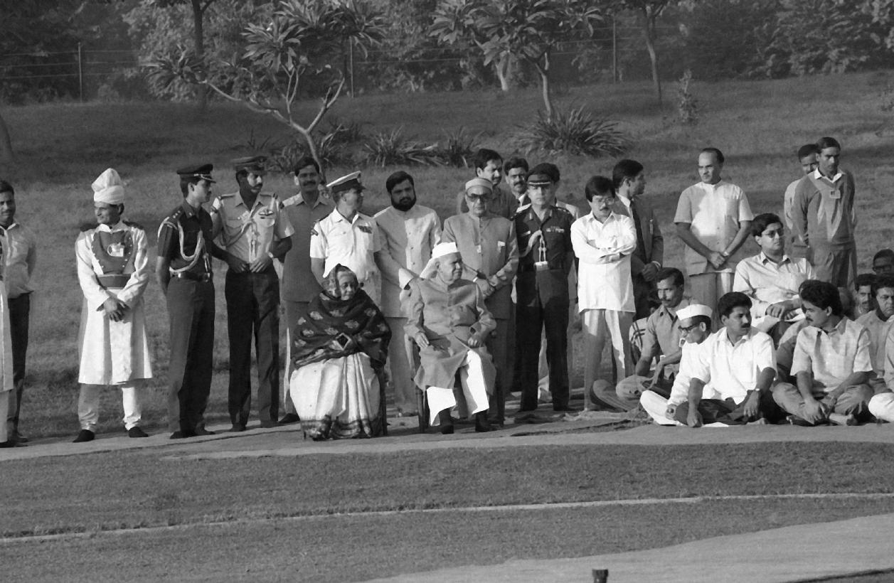 | Caption: | The President of India, Dr. Shankar Dayal Sharma paying homage at the Samadhi of Smt. Indira Gandhi on her 10th Death Anniversary at Shakti Sthal in New Delhi on October 31, 1994. |