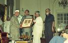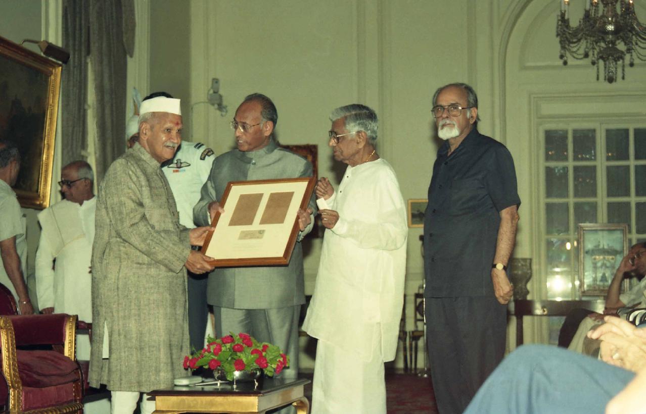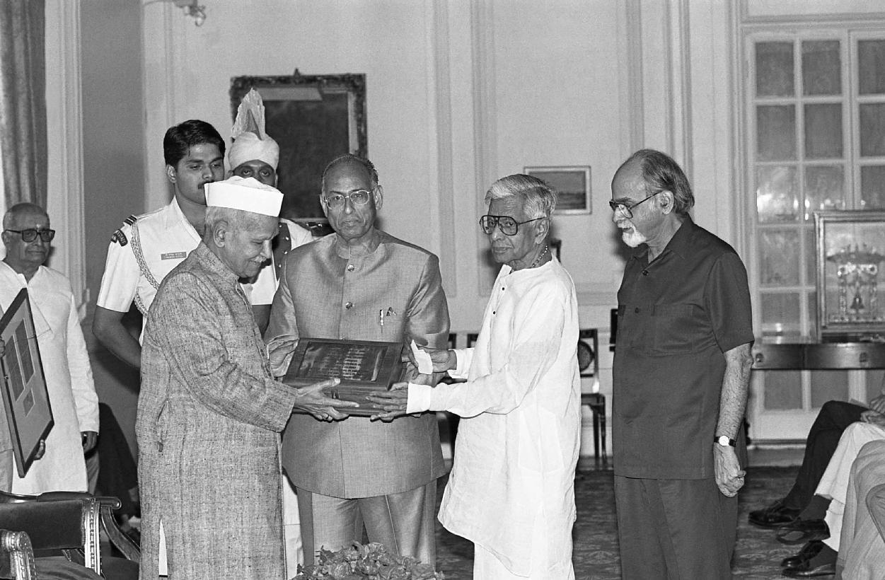 | Caption: | The President of India, Dr. Shankar Dayal Sharma receiving a copy of the book "Bhagavad Gita" used by Mahatma Gandhi from Dr. L.M. Singhvi, High Commissioner of India to U.K. at Rashtrapati Bhavan in New Delhi on August 24, 1996. |