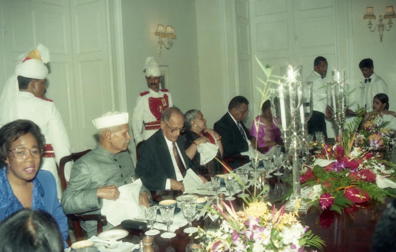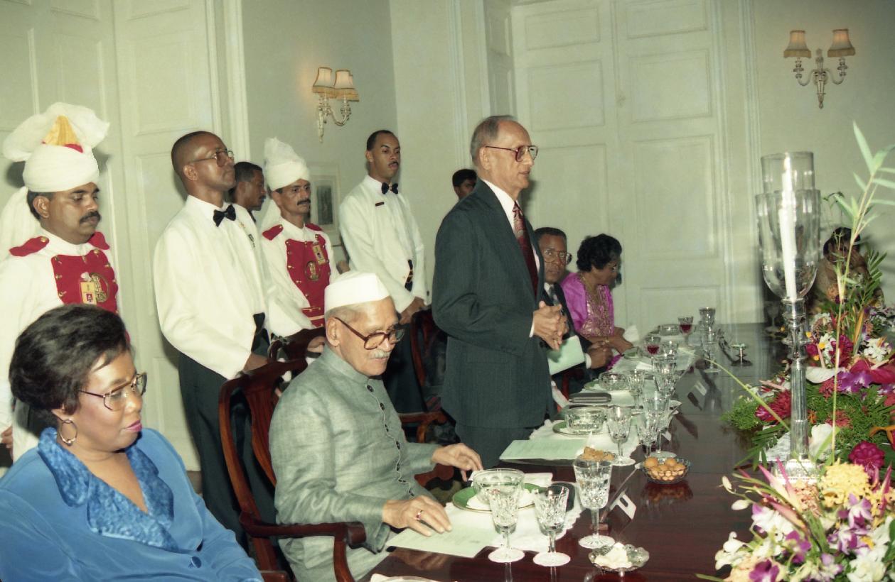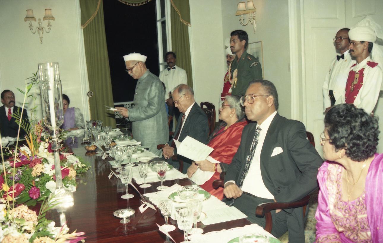 | Caption: | The President of India, Dr. Shankar Dayal Sharma at the Banquet hosted by the President of Trinidad and Tobago, Mr. Noor Hassanali, at Port of Spain on May 30, 1995. |