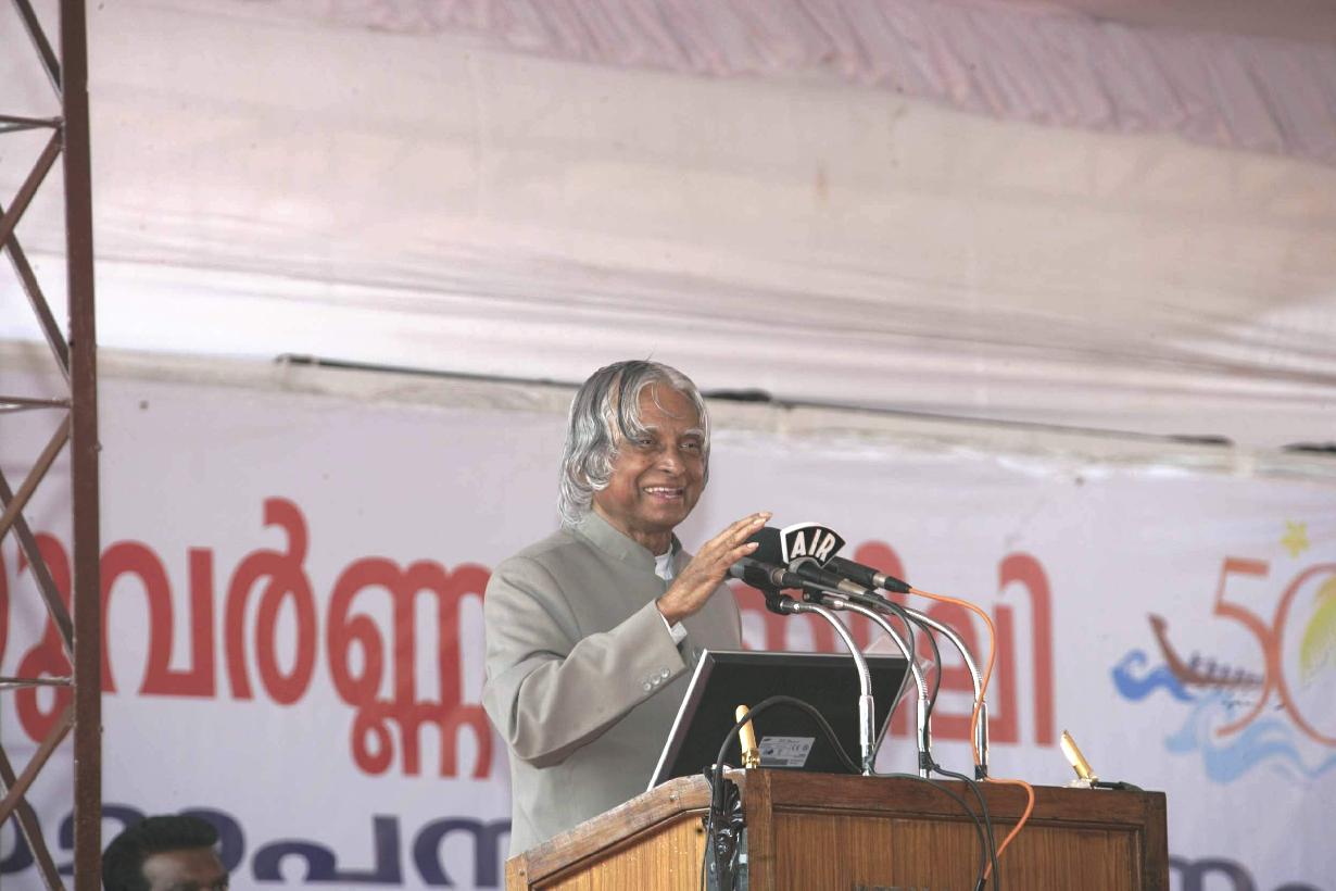 | Caption: | The President of India, Dr A P J Abdul Kalam addressing at the Closing Ceremony to Mark the 50th Year of Formation of Kerala at Thrissur in Kerala on Dec 20, 2006 |