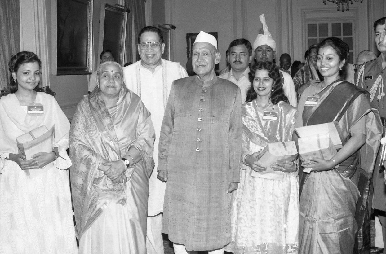 | Caption: | The President of India, Dr. Shankar Dayal Sharma presenting awards to the winners of the Maulana Abul Kalam Azad Essay Competition for 1993-94 at Rashtrapati Bhavan in New Delhi on November 11, 1995. |
